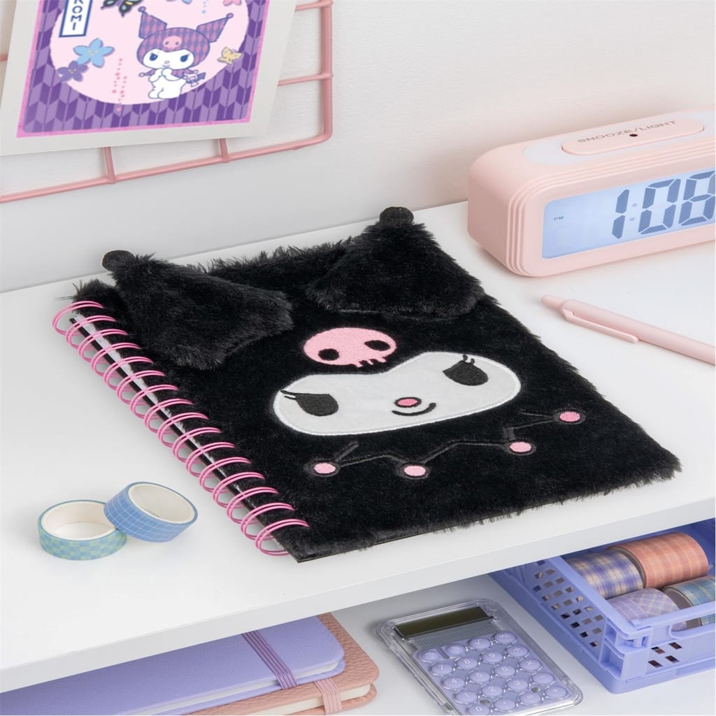 - The soft, fluffy cover features a black Kuromi design to instantly lift your mood. Inside the A5 spiral-bound notepad, you'll find 160 lined pages awaiting your notes, ideas, lists, drawings and more.