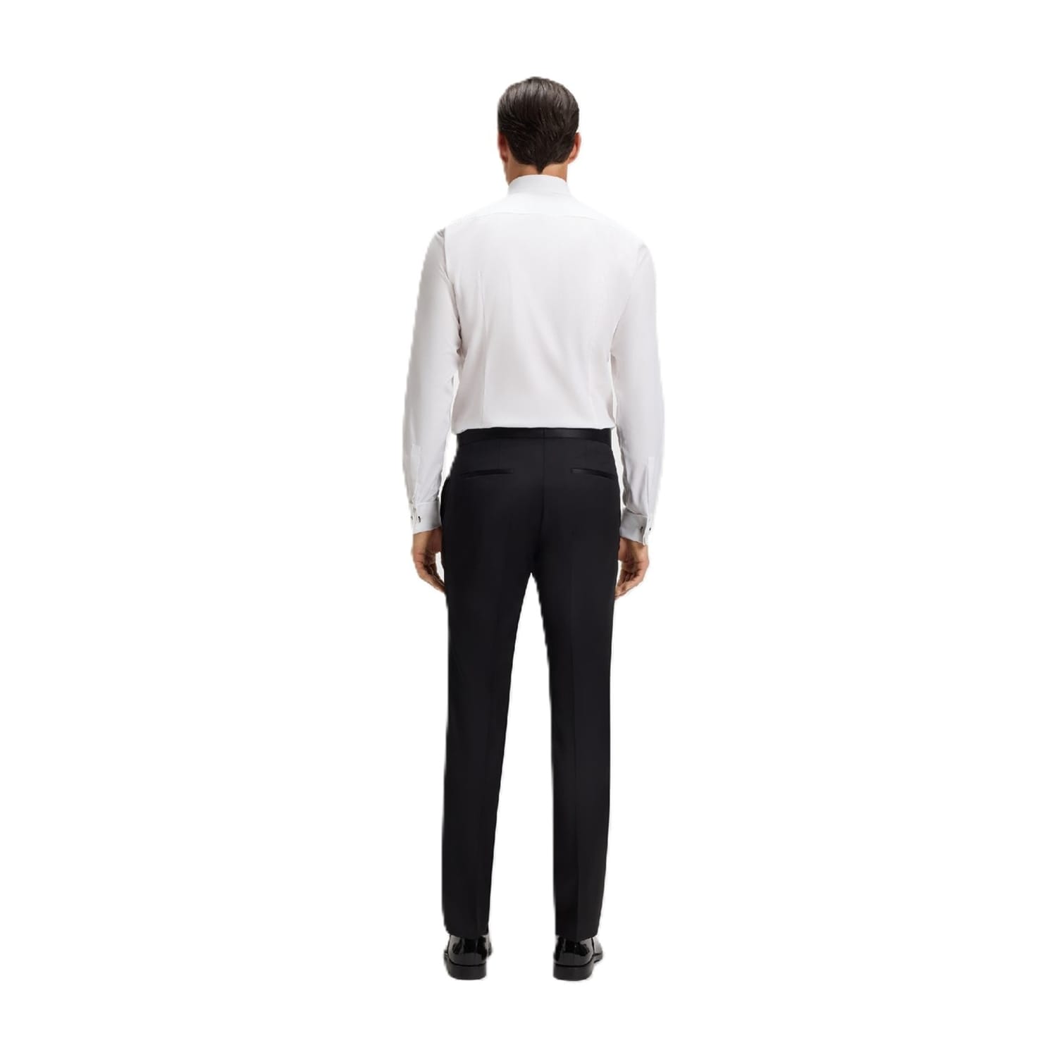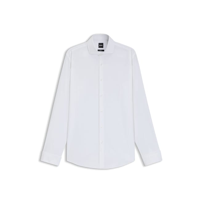 This Boss top is a sophisticated choice for formal occasions. Crafted with a solid pattern, it features a spread collar and long shirt sleeves with barrel cuffs. The slim fit and straight hem offer a sleek silhouette, while the full button closure adds a classic touch. Suitable for all seasons, this top seamlessly blends style and functionality. -