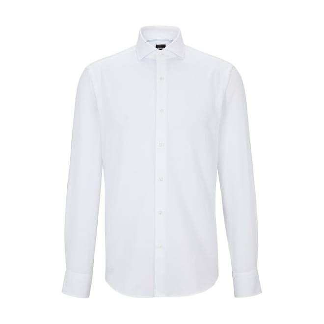 This Boss Joe top is a sophisticated choice for formal occasions. Crafted with a solid pattern, it features a spread collar and long shirt sleeves with barrel cuffs. The regular fit ensures comfort, while the full button closure and curved hem add a touch of elegance. -