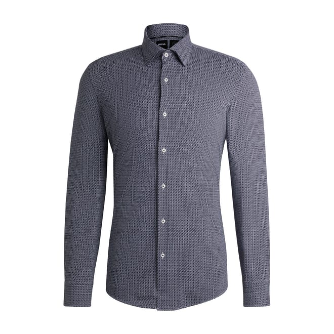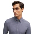 This Boss top is a sophisticated choice for formal occasions. Featuring a geometric pattern, it comes with long sleeves and a shirt sleeve style. The top has a full button closure and a regular fit, complemented by a point collar and barrel cuffs. The curved hem adds a touch of elegance to this versatile piece. -