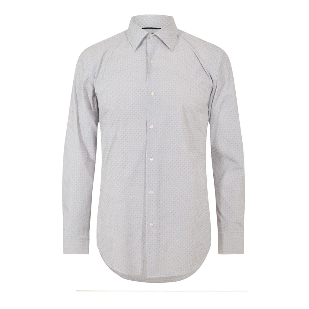 This Boss top is a sophisticated choice for formal occasions. Featuring a geometric pattern, it comes with long raglan sleeves and a point collar. The regular fit ensures comfort, while the full button closure adds a classic touch. Finished with a curved hem and barrel cuffs, this top is a versatile addition to any wardrobe. -