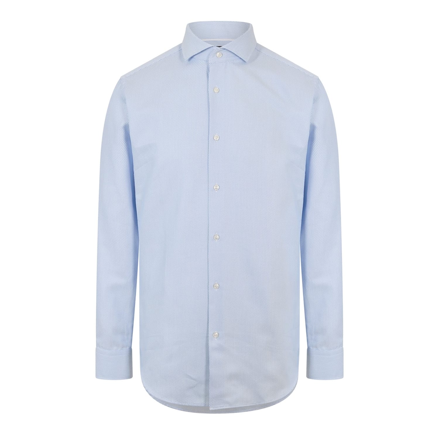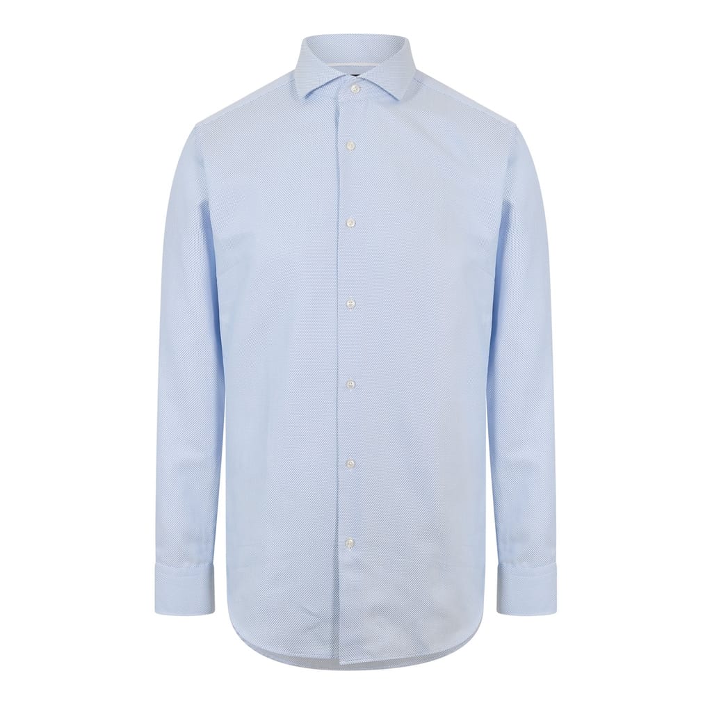 The Boss Joe top is a sophisticated choice for formal occasions. Featuring a spread collar and long shirt sleeves, it offers a regular fit for comfort. The solid pattern adds a classic touch, while the full button closure and barrel cuffs enhance its elegant design. The curved hemline completes the look, making it a versatile addition to any wardrobe. -