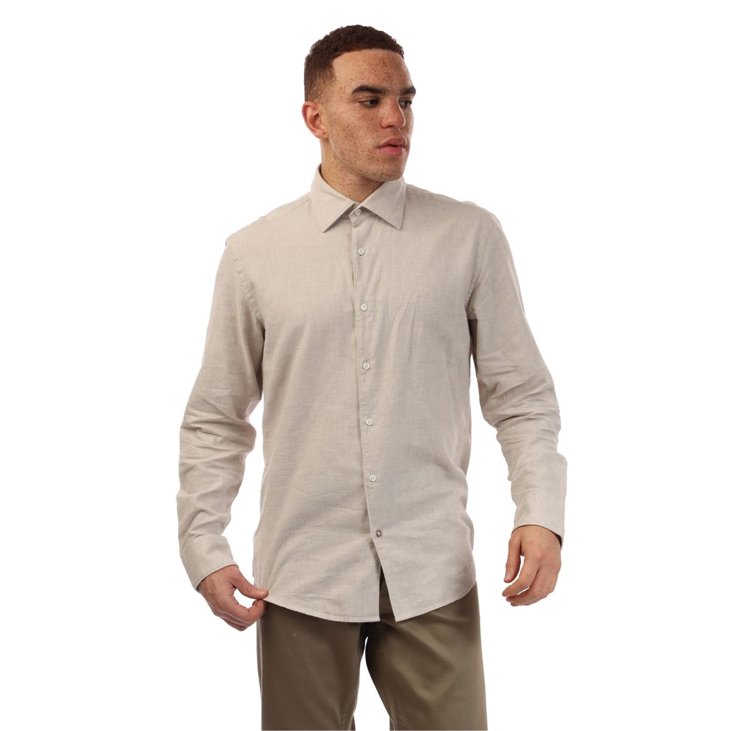 This Boss top is a sophisticated choice for formal occasions. Featuring a solid pattern, it comes with long sleeves and a regular fit for a classic look. The shirt collar and barrel cuffs add a touch of elegance, while the full button closure ensures a neat finish. The curved hemline enhances its refined silhouette, making it a versatile addition to your wardrobe. -