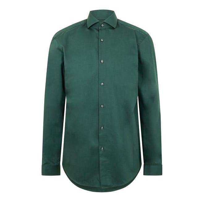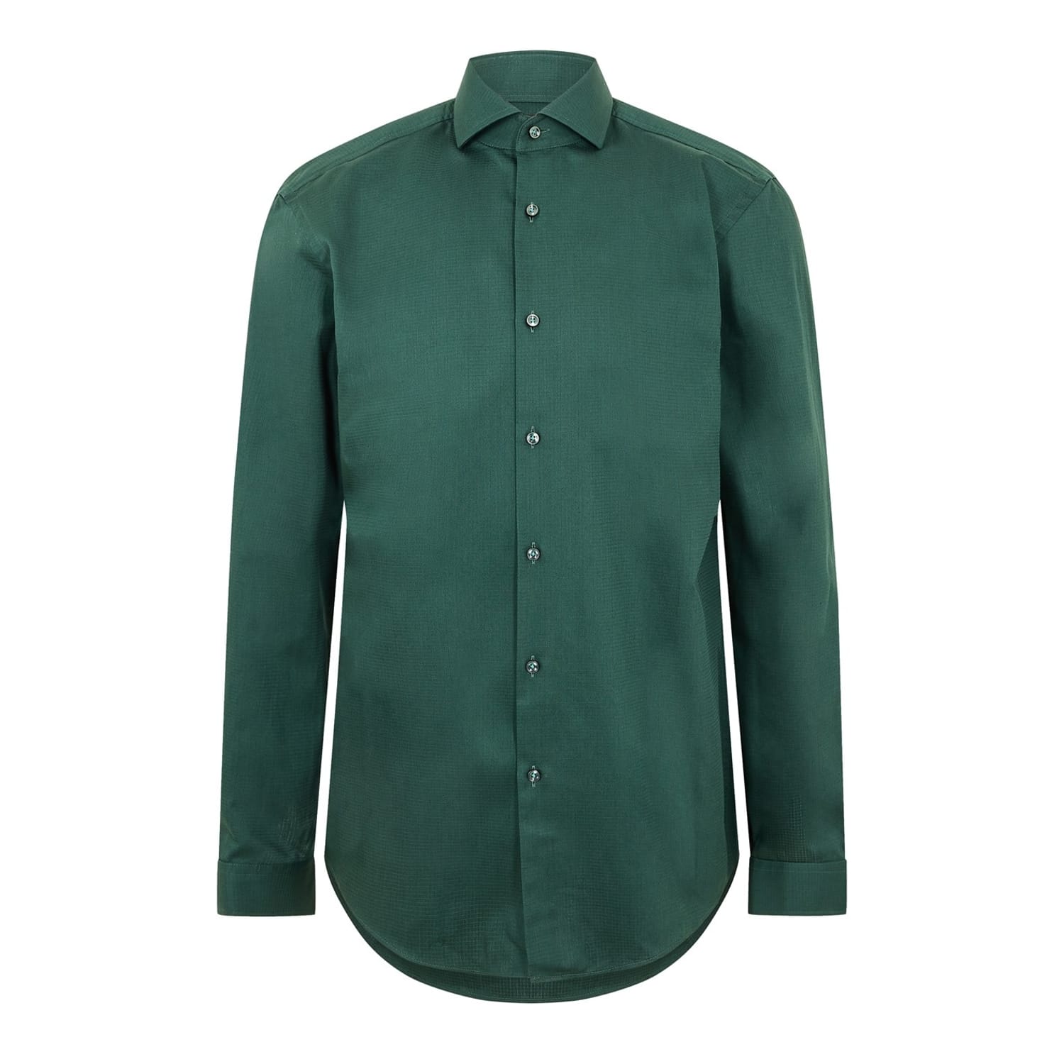 This Boss top is a sophisticated choice for formal occasions. Crafted with a solid pattern, it features long sleeves with shirt-style cuffs and a spread collar. The regular fit ensures comfort, while the full button closure adds a classic touch. The curved hemline completes the elegant design, making it a versatile addition to any wardrobe. -
