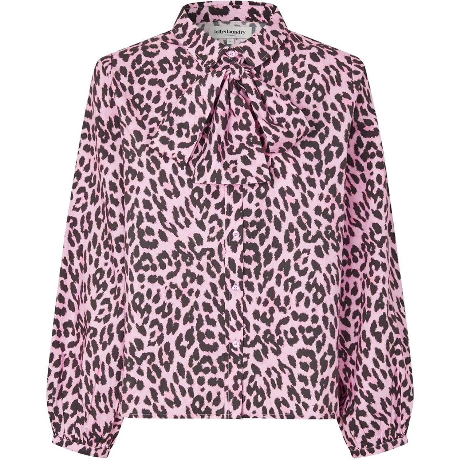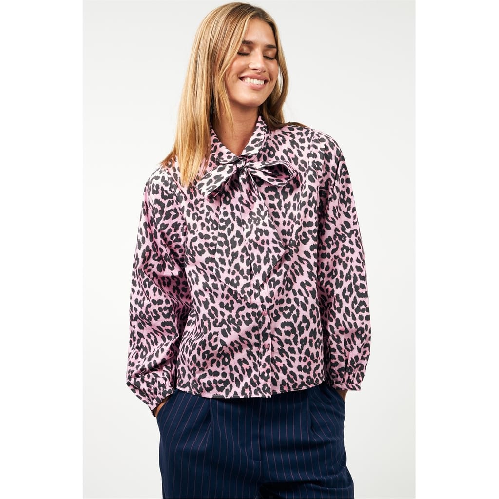 Discover the Lollys Laundry top, featuring a striking leopard pattern. This long-sleeve design includes a tie neck and a front button closure, offering a regular fit. The top is adorned with a bow embellishment and features an elasticated cuff for added comfort. A straight hem completes the look, making it a versatile addition to your wardrobe. -