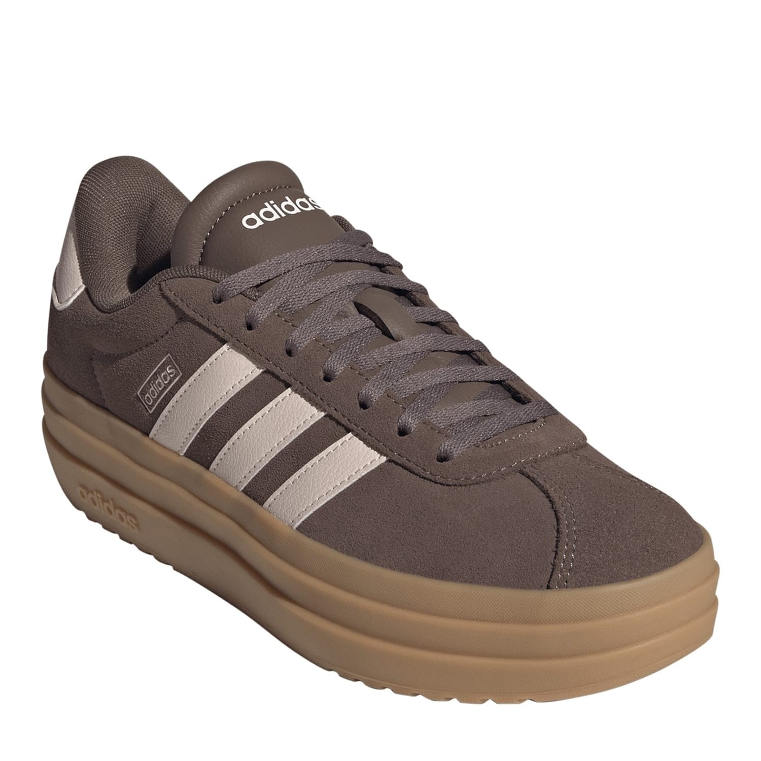 - With their solid base colour and contrasting heel counters, these women's platform trainers make a bold statement wherever you go and effortlessly style into any ensemble. adidas' iconic 3-Stripes motifs on the sides and the striking lateral lettering on the tongues, heels, and midsoles ensure instant brand recognition with a pinch of athletic flair. Whether heading out to meet friends, exploring the city, or lounging at home, adidas' VL Court Bold Shoes are a perfect choice. Embrace your individuality, turn heads, conquer the streets, and don't look back! -