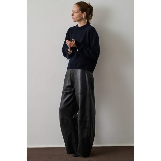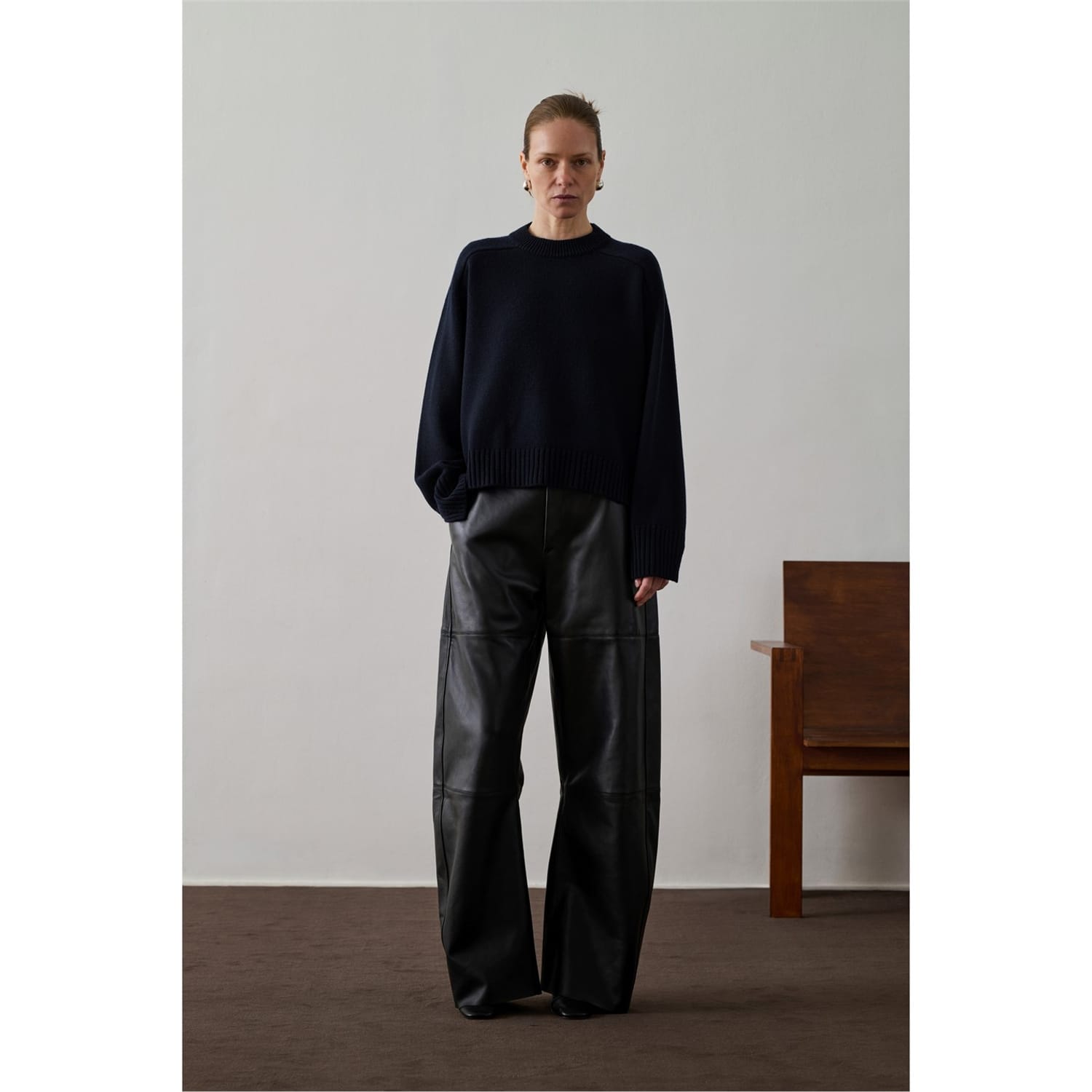 This Soeur top is designed for the autumn and winter seasons, featuring a solid pattern. It has a crew neck and long raglan sleeves, offering a boxy fit. The top is detailed with ribbed cuffs, collar, and hem, adding a touch of texture to its classic design. -
