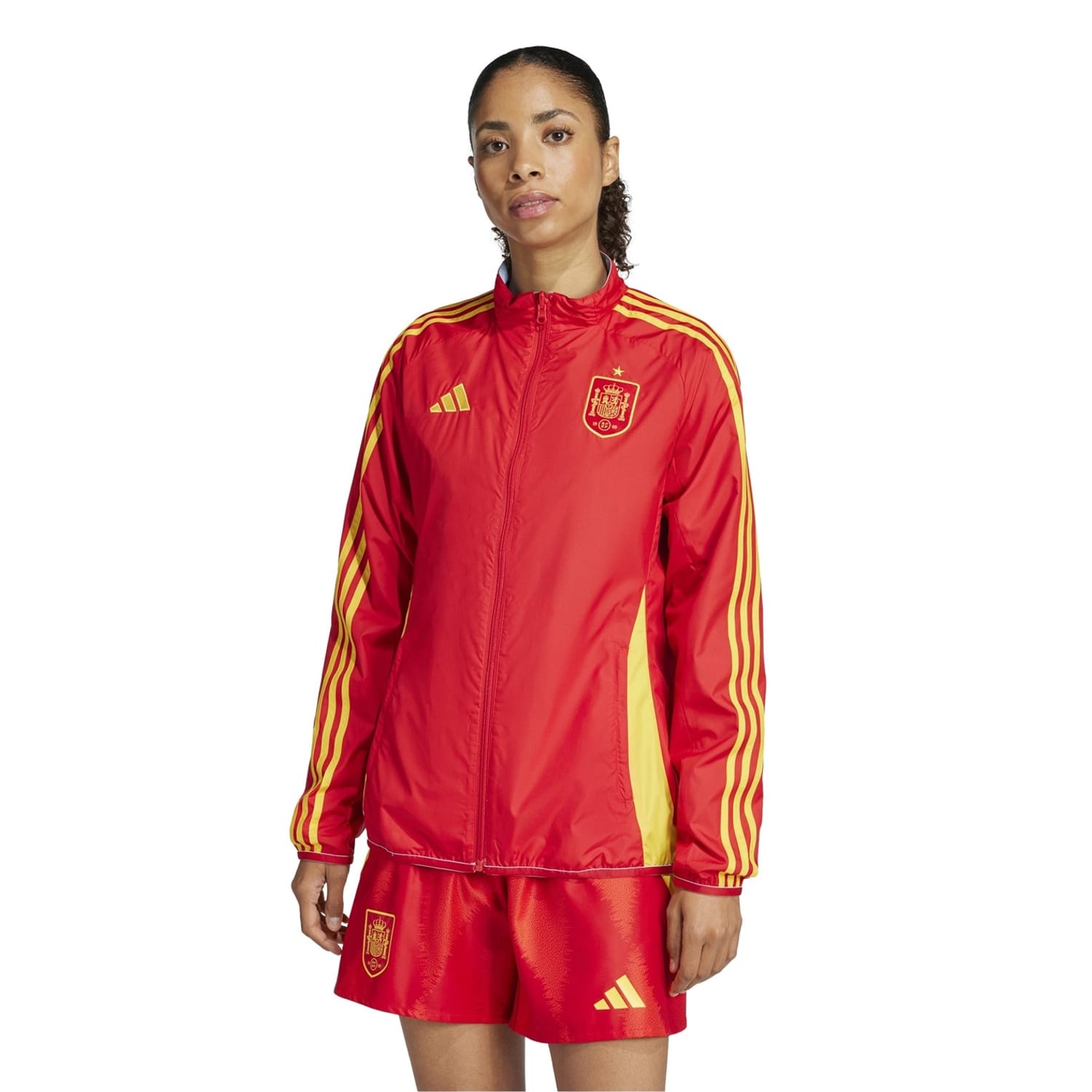 Show your national pride with the adidas Spain Rain Jacket 24/25. It features a reversible design for a customisable look. Perfect for training in testing conditions, or repping La Roja in your everyday wear.