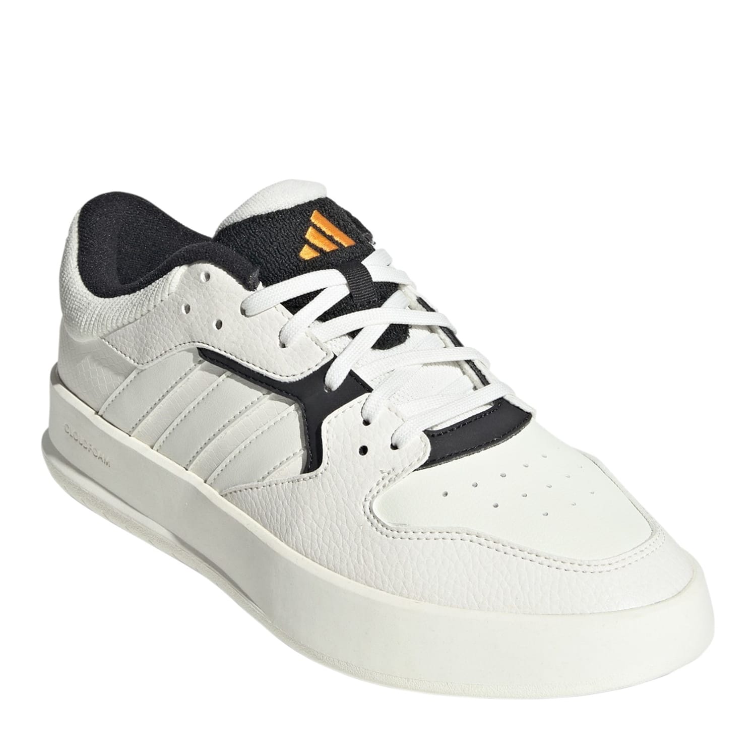 Make a sporty statement every time you step out. These adidas sneakers grab the eye with bold details and striking colours. The full-grain leather upper is sleek, smooth and built for daily wear while a Cloudfoam midsole provides a soft yet stable ride. The sturdy rubber outsole rounds out this low-profile design, keeping you firmly planted wherever adventure leads. -
