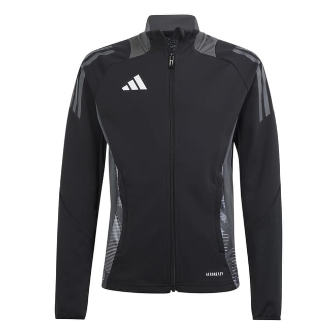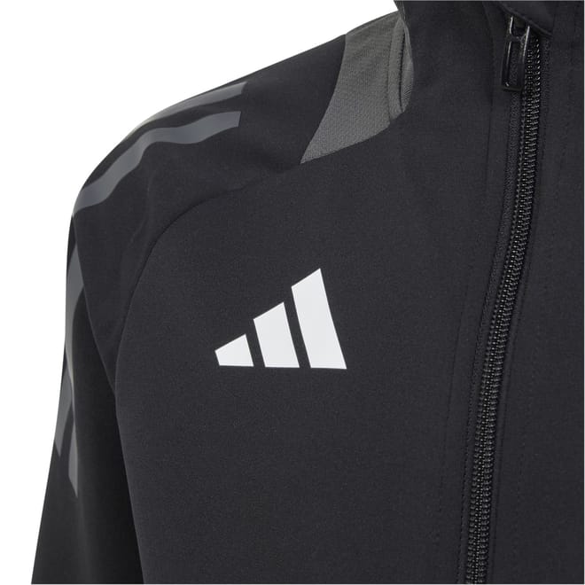 This adidas top for kids features a funnel neck and a convenient zipper closure. Designed with long raglan sleeves and elasticated cuffs, it offers a regular fit for comfort. The band collar and straight hem add to its classic style, while the iconic three stripes pattern showcases the brand's signature look. -