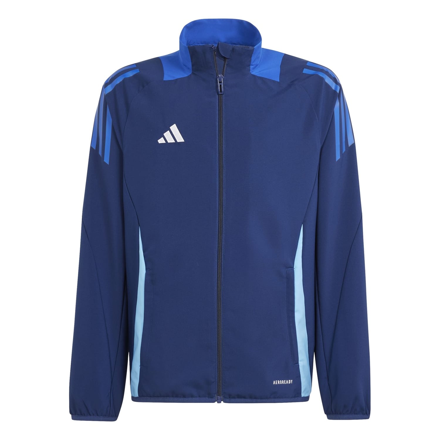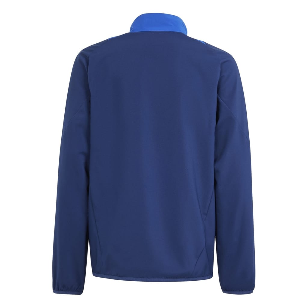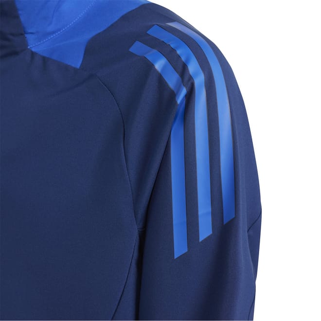 This adidas kids' top features a high collar and a funnel neck with a convenient zipper closure. The long raglan sleeves are complemented by elasticated cuffs, ensuring a comfortable regular fit. The top is adorned with iconic three stripes and side stripes, adding a sporty touch. The straight hem completes the design, making it a versatile addition to any young wardrobe. -