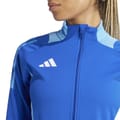 This adidas top features a sleek slim fit with long raglan sleeves and a high collar. The design includes a front zipper closure and fitted cuffs for a streamlined look. Embellished with the iconic three stripes pattern and a logo, it also offers a practical front pocket. The straight hem adds a clean finish to this stylish piece. -