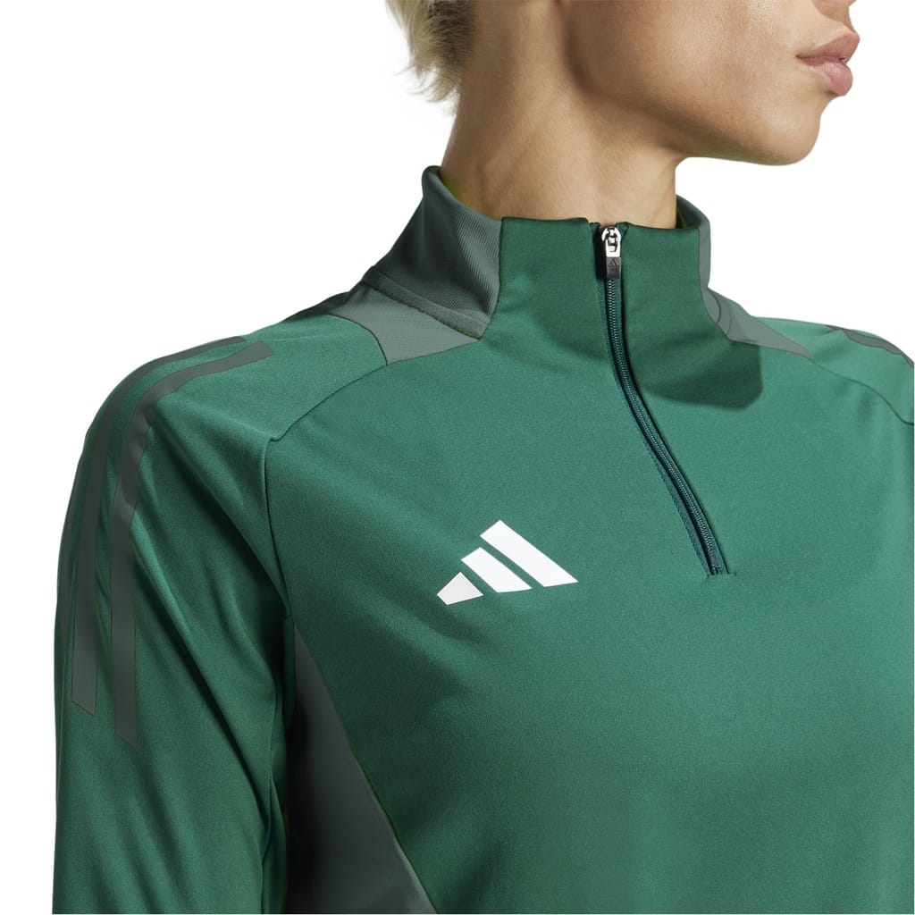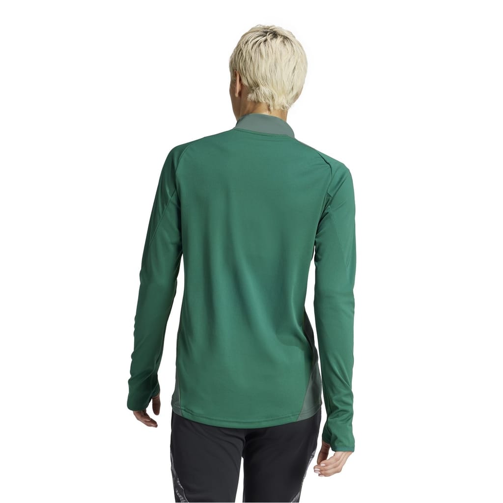 This adidas top is designed for sporting activity and pre-match collections. It features a quarter zipper closure and a zip neck with a high collar, offering a sleek look. The long sleeves come with thumbhole cuffs, enhancing comfort and functionality. The slim fit and solid pattern make it a versatile choice, while the curved hem adds a stylish touch. -