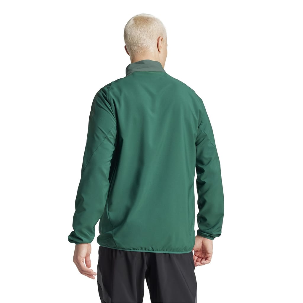 This adidas top features a high collar and a funnel neck, offering a regular fit with long raglan sleeves. The design is highlighted by the iconic three stripes pattern. Elasticated cuffs and hem provide a comfortable fit, making it ideal for pre-match activities. -