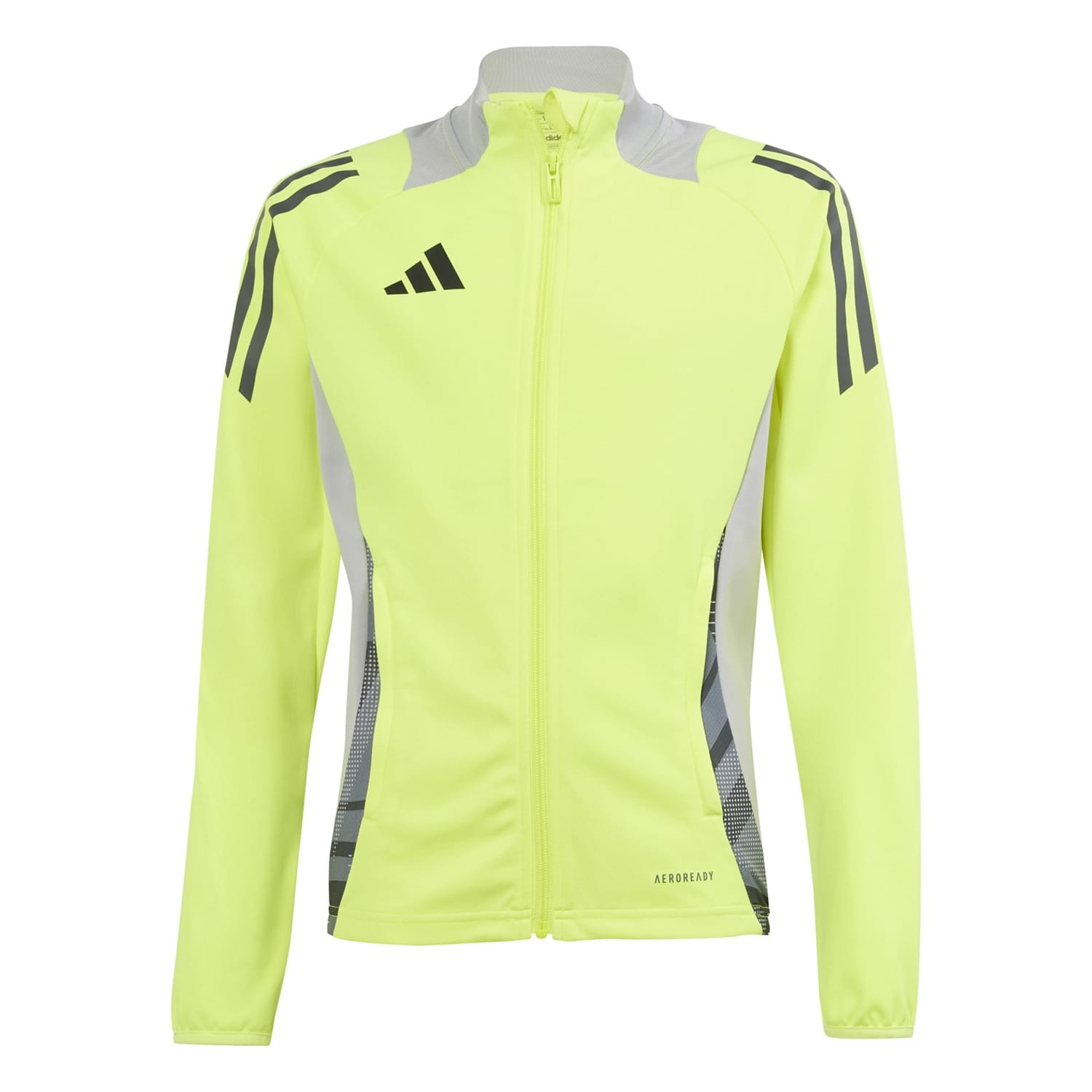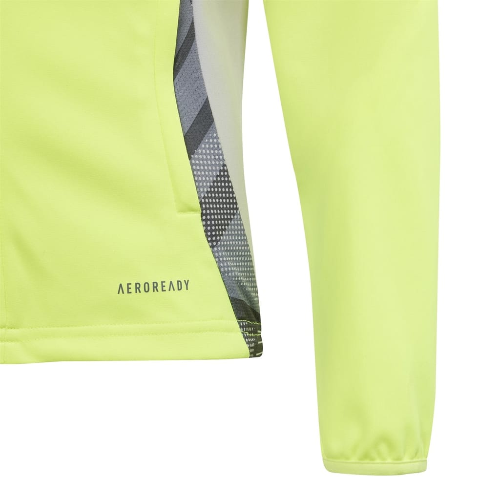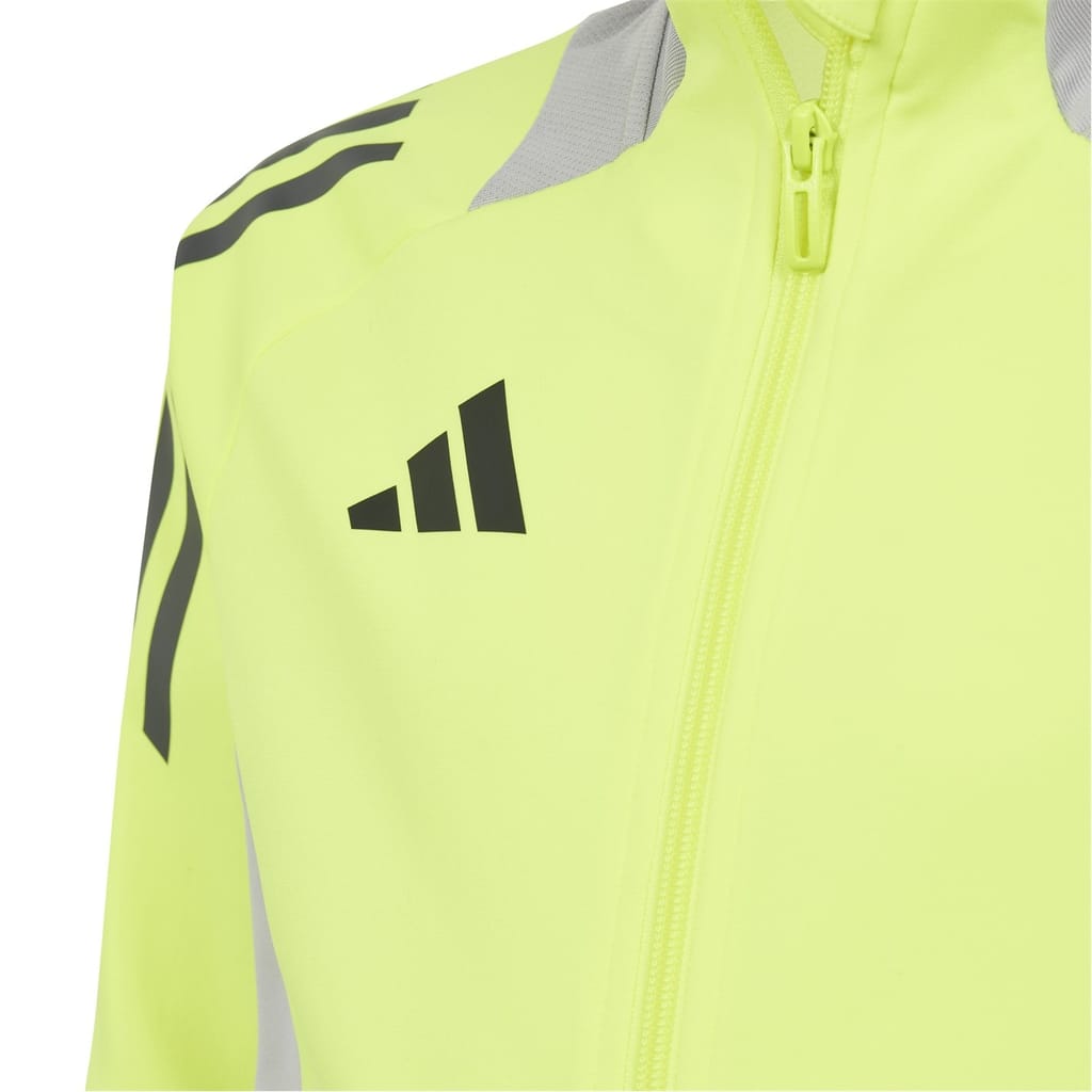This adidas top for kids features a high collar and a funnel neck, offering a stylish look with its three stripes pattern. The long raglan sleeves and elasticated cuffs ensure comfort, while the regular fit provides ease of movement. A full zipper closure adds practicality, and the sidewall stripes embellishment enhances its sporty appeal. The straight hem completes the design. -