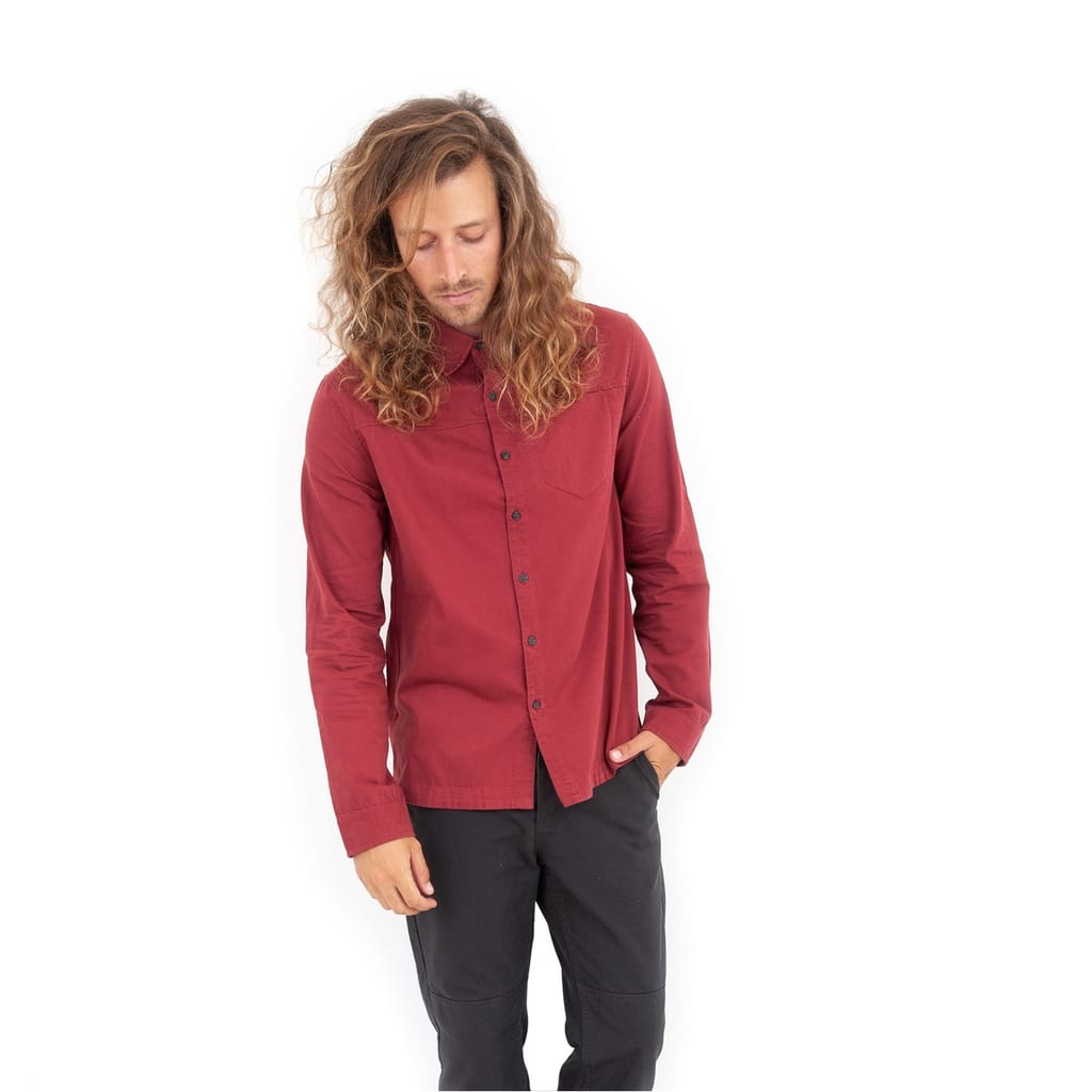 Discover the Roamers & Seekers top, featuring a solid pattern and long sleeves with a shirt collar. This regular fit design includes a front button closure and a curved hem, complemented by a practical pocket. The shirt sleeve style is finished with a barrel cuff, offering a classic and versatile look. -