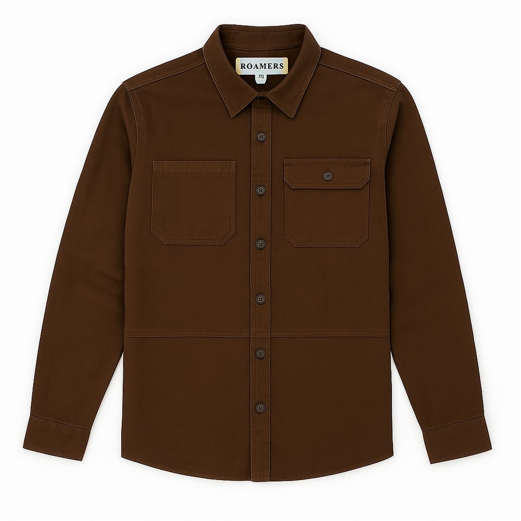 Discover the Roamers & Seekers top, featuring a solid pattern and long sleeves with a shirt collar. This regular fit design includes a full button closure and a curved hem, complemented by a barrel cuff. The top is enhanced with a practical left chest pocket, adding a touch of functionality to its classic style. -