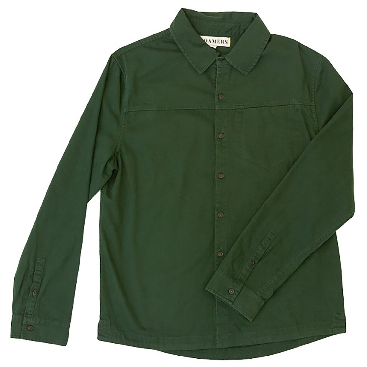 Discover the Roamers & Seekers top, featuring a solid pattern and long sleeves. This regular fit design includes a full button closure and a classic shirt collar. The top is finished with a curved hem and barrel cuffs, offering a timeless and versatile look. -