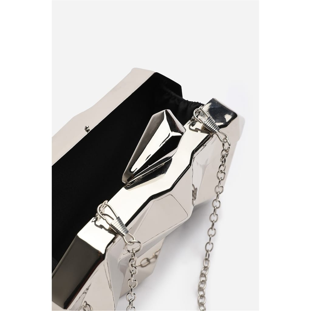 Turn heads with this striking Geometric Clutch Bag, designed to make a bold fashion statement at any evening event. The angular, high-gloss surface creates a modern 3D effect that reflects light from every angle. -