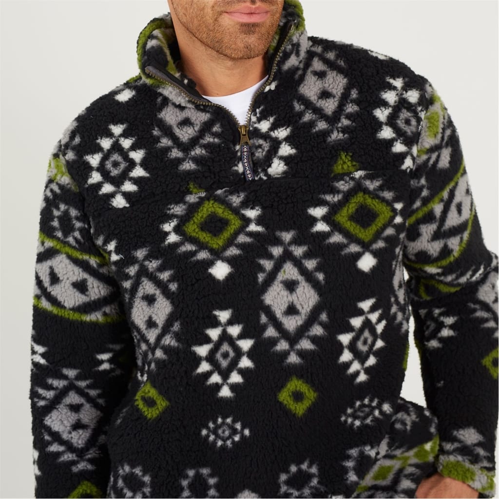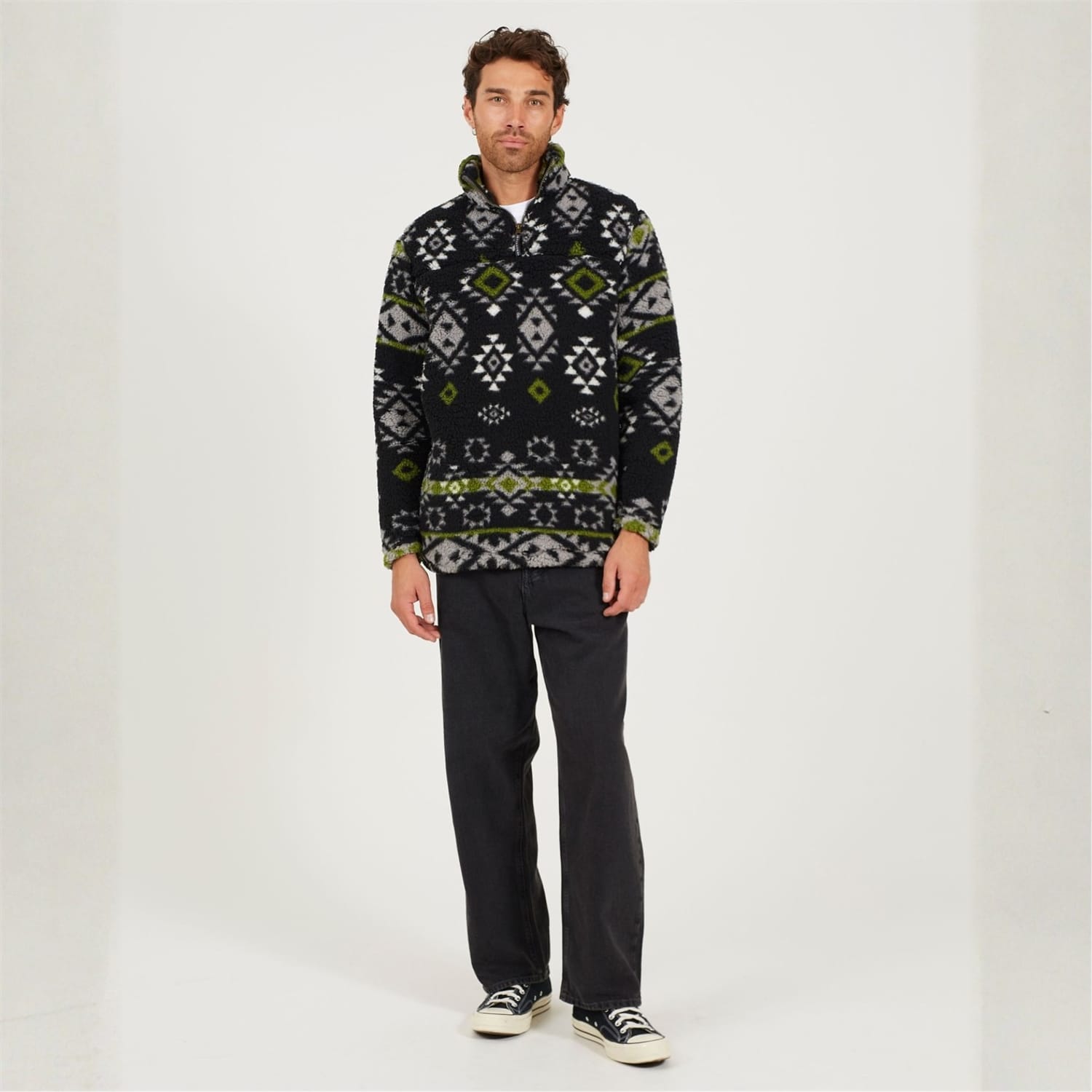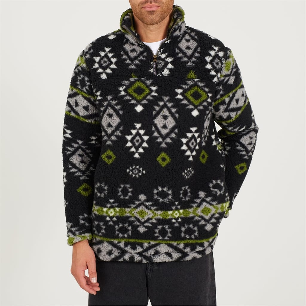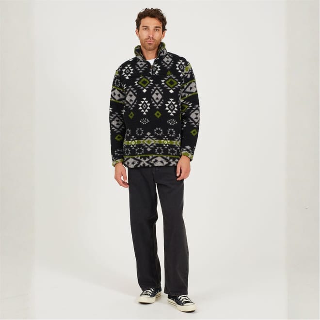 This Brave Soul top is perfect for winter with its long sleeves and regular fit. It features a high collar and a quarter zipper closure, adding a touch of style. The curved hem and southwestern Aztec block graphic make it a standout piece. -
