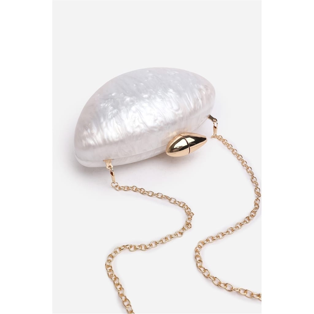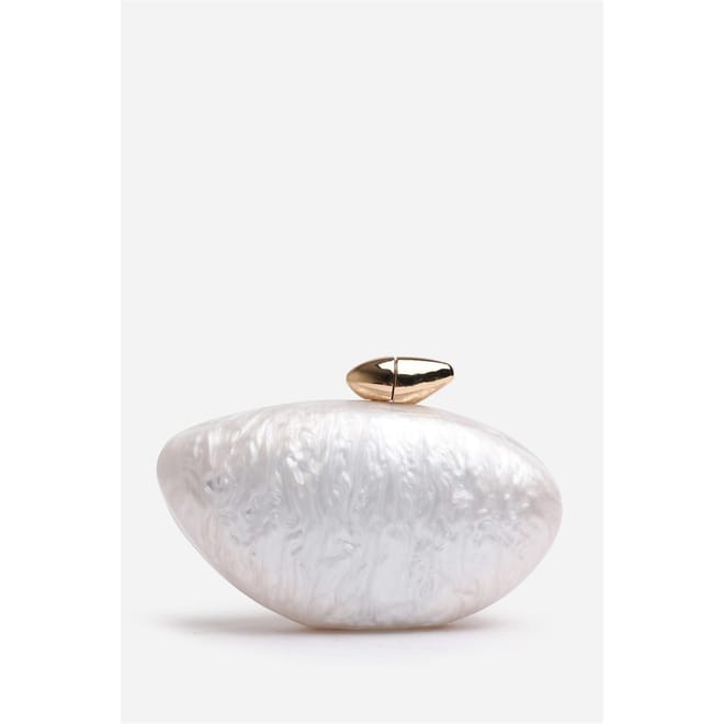 Make a statement with the ocean-inspired Marble Acrylic Clutch, designed to turn heads at any special event. Its sculpted silhouette and glossy marbled finish evoke luxurious, artistic charm. -