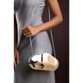 The Sculpted Evening Clutch Bag is a striking statement piece designed to elevate any outfit. With its bold sculpted silhouette and high-shine metallic finish, this clutch brings modern glamour to special occasions. -