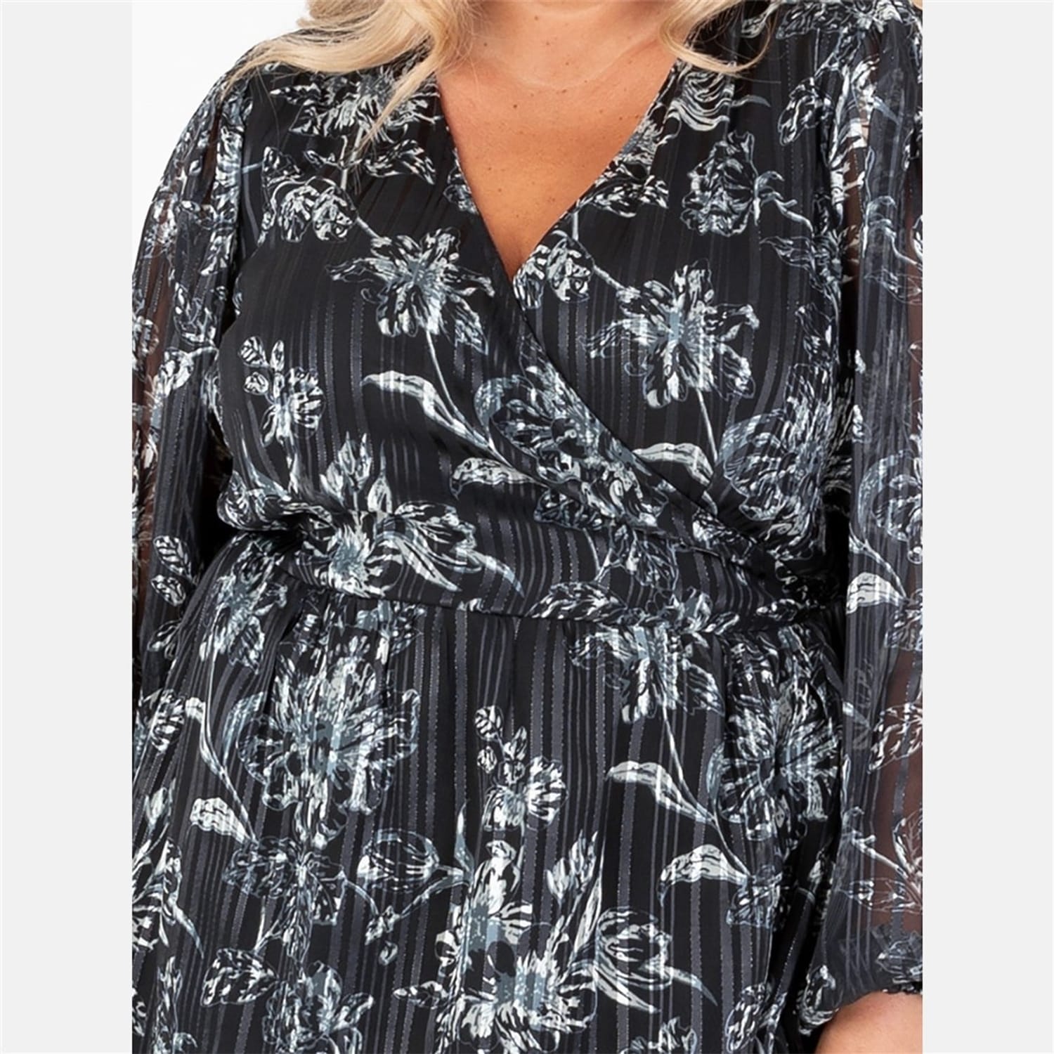 This Lovedrobe top features a charming floral pattern and a v-neckline, complemented by elegant balloon sleeves. Designed with a regular fit, it offers a flattering silhouette. The curved hem adds a touch of sophistication, while the tie-front closure provides a stylish finish. -