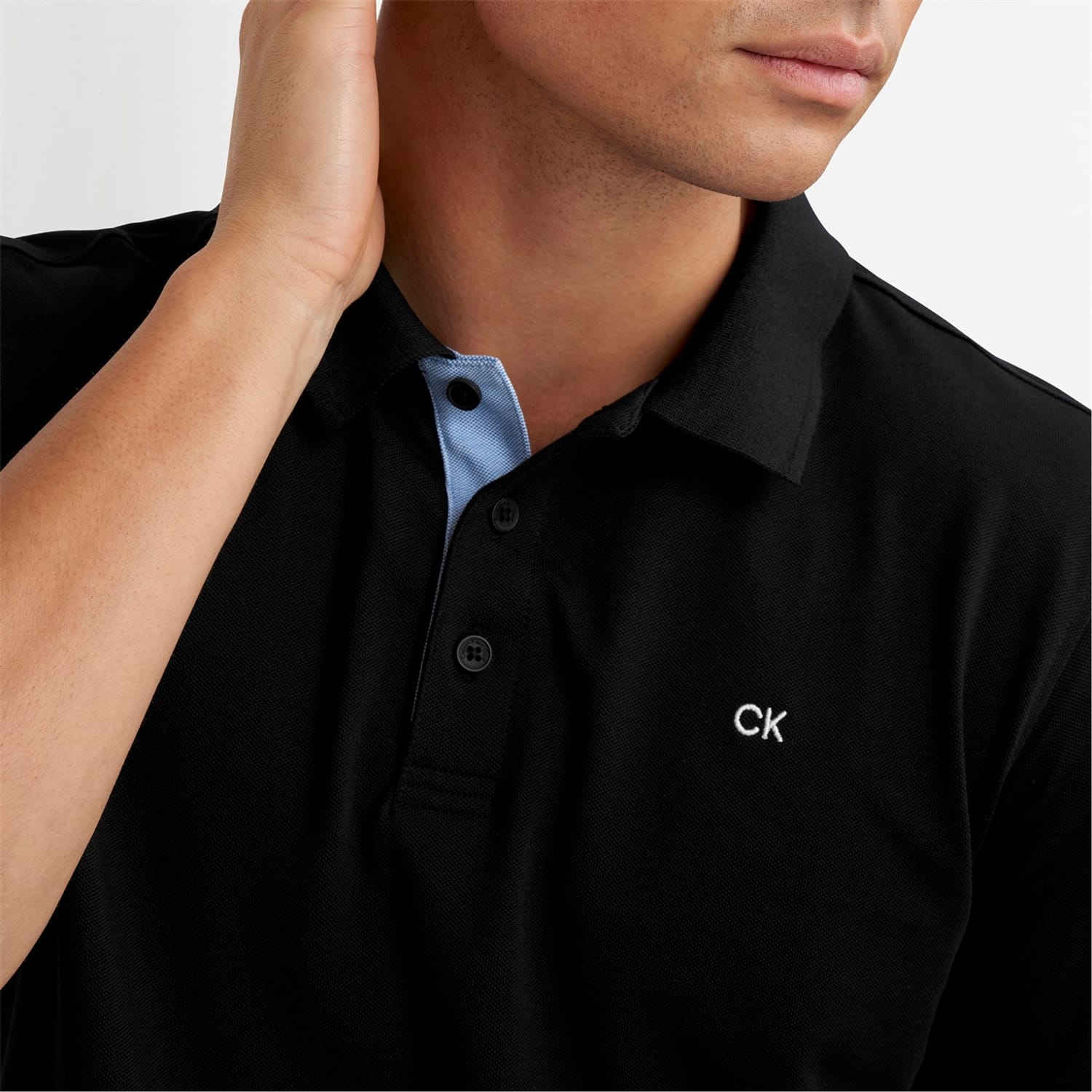 This Calvin Klein Golf top is designed for performance with a regular fit and short sleeves. It features a front button closure and a polo collar, complemented by a straight hem. The solid pattern is enhanced with an embroidered logo, adding a touch of sophistication. Ideal for those seeking a blend of style and functionality. -