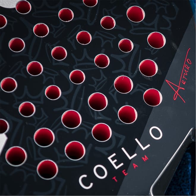 Power comes easily with the COELLO TEAM 2025 PADEL RACQUET, which was designed and developed in collaboration with world number one Arturo Coello. The softer stiffness model from the exclusive Arturo Coello collection is built for intermediate and advanced players who are looking for easy power at lower speed ball, comfort and stability when moving forward to the net to attack. The diamond-shaped racquet’s elegant design includes some personal touches, such as King Arturo’s crown logo and signature, and has a glossy and eye-catching finish.