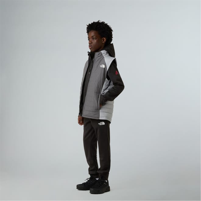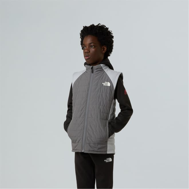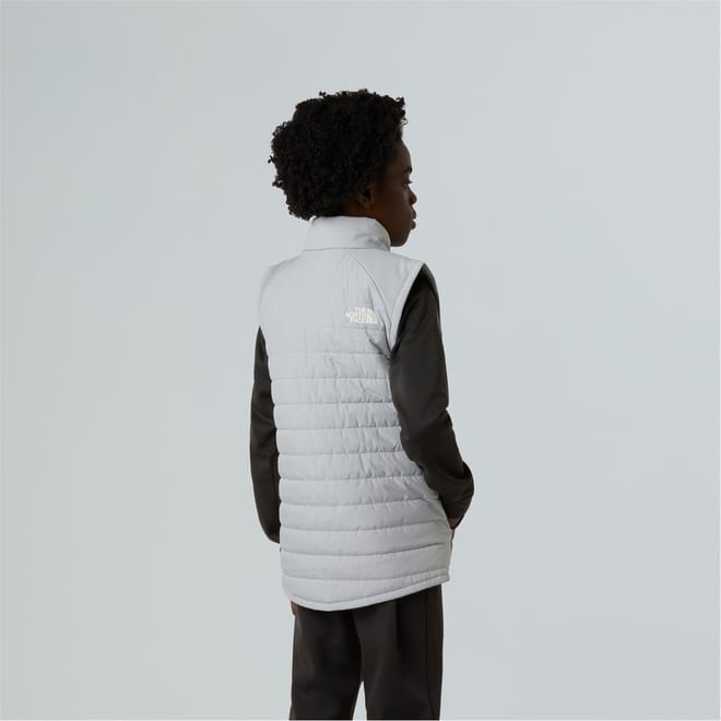 The North Face Kids Never Stop Sleeveless Gilet offers insulation for young adventurers. This vest features synthetic fill wrapped in a resilient exterior, with sleeveless design ensuring unrestricted movement during outdoor pursuits while providing essential core warmth to insulate against the elements across various outdoor activities.