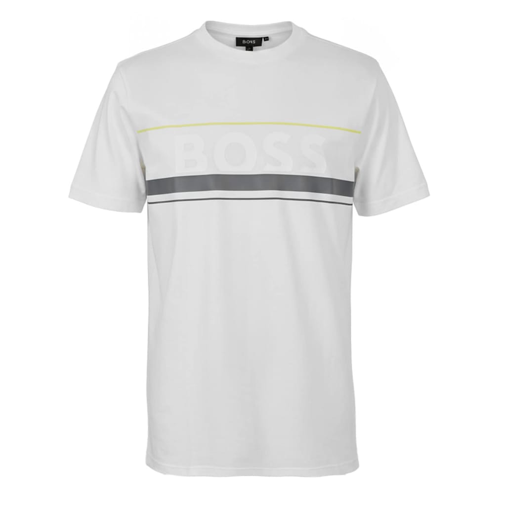 BOSS's Logo Striped T-Shirt combines classic style with the brand's logo lettering across the chest. This piece features a design that works well with various outfit combinations.
