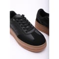 - Design: Low wedge lace-up trainer with leopard heel detail