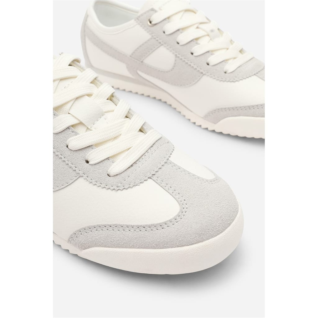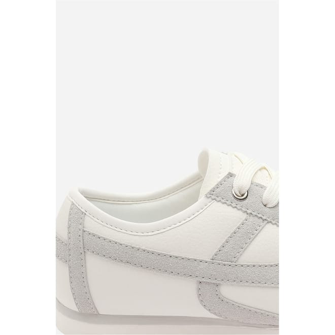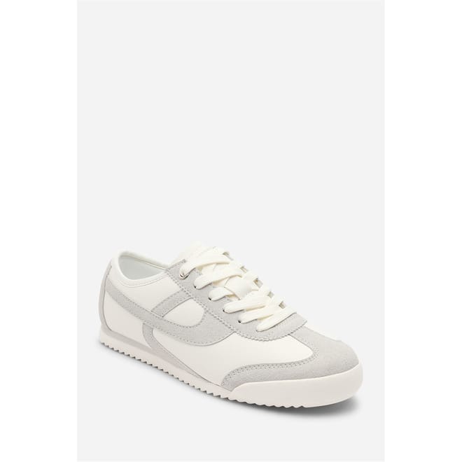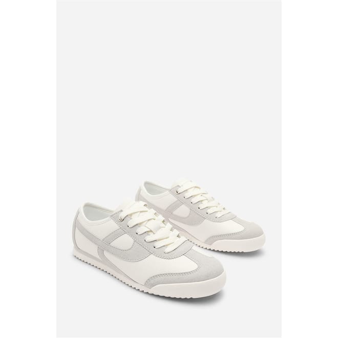 - Design: Court-style lace-up trainer with stripe detail
