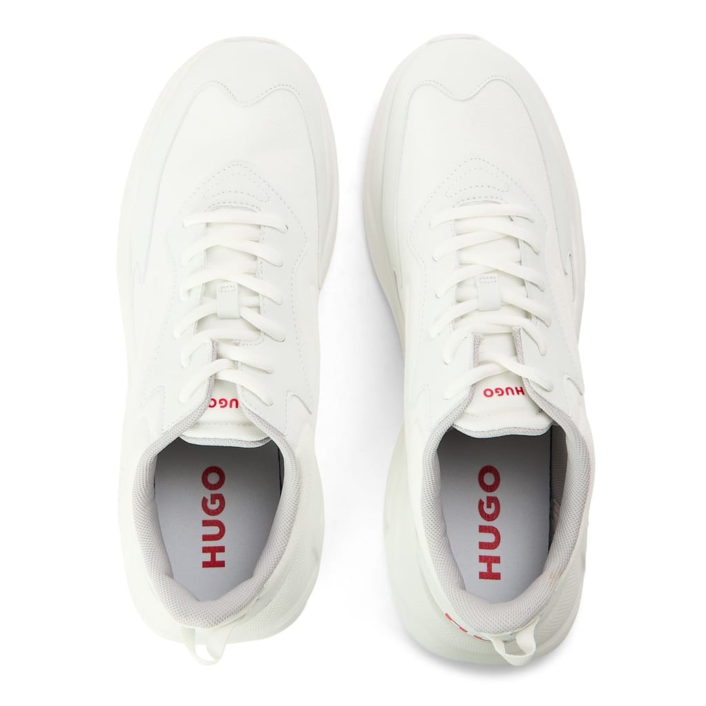 Contemporary design meets athletic innovation in these HUGO runners. A chunky silhouette features mesh and synthetic overlays across the upper, creating a dynamic look that's right on point. The substantial midsole delivers superior cushioning for everyday wear, while the tactile mixture of textures adds depth to these modern Men's Leon Runners. A subtle HUGO logo detail and signature red tab create distinctive brand elements without overwhelming the clean aesthetic.