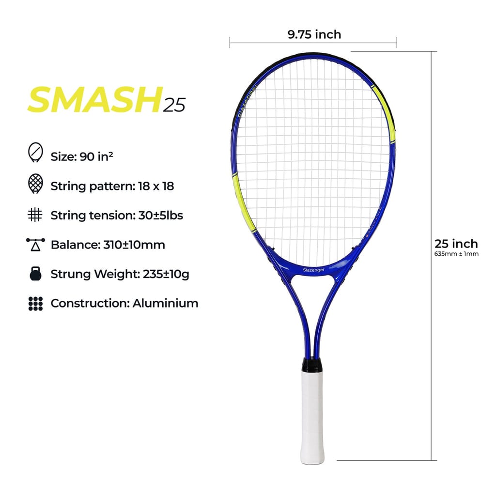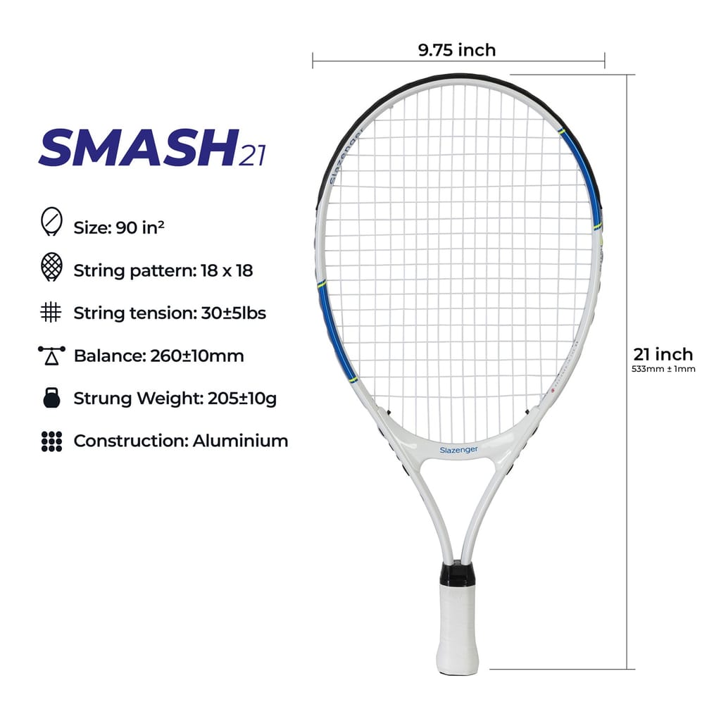 - The Slazenger Smash Tennis Racket features a lightweight alloy frame with cushioned grip for excellent control and power, an ideal start up racket.