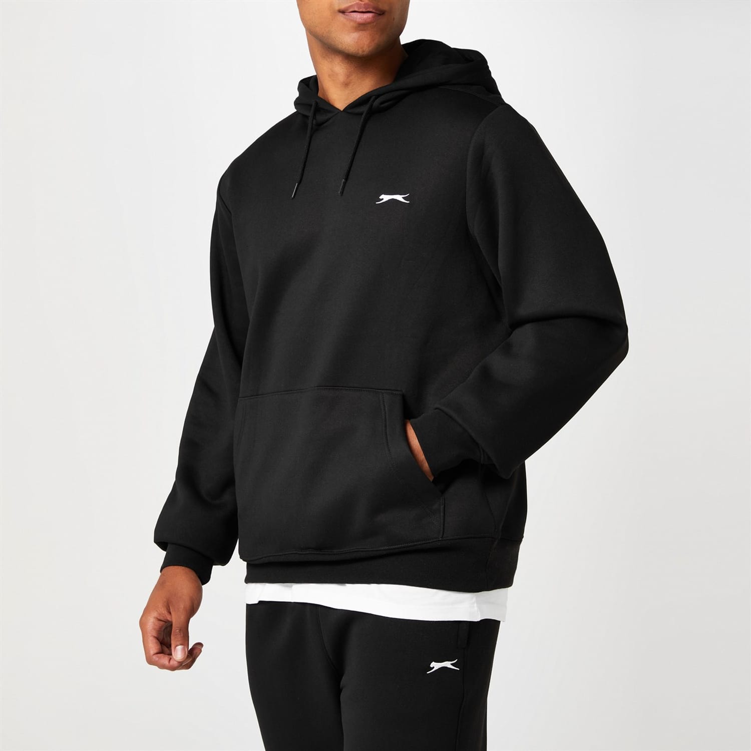 This Mens Slazenger Fleece Hoodie features an over the head design with a drawstring fastening to the hood, as well as cuffed sleeves and a cuffed hem for a secure fit. There is a central kangaroo pouch pocket on the front for storage and embroidered Slazenger branding on the chest to complete the piece.