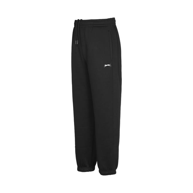 - These Slazenger Junior Fleece Sweat Pants feature an elasticated waist band with a drawstring fastening for a secure fit. While the minimalistic design keeps them fashionable and simple, the fleece fabric makes them super cozy, alongside the elasticated cuffs for a great combination of warmth and comfort. The look is then completed with Slazenger branding on the front. Do not miss out on these ones.