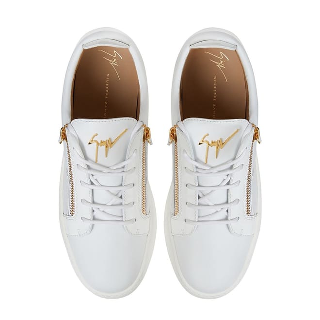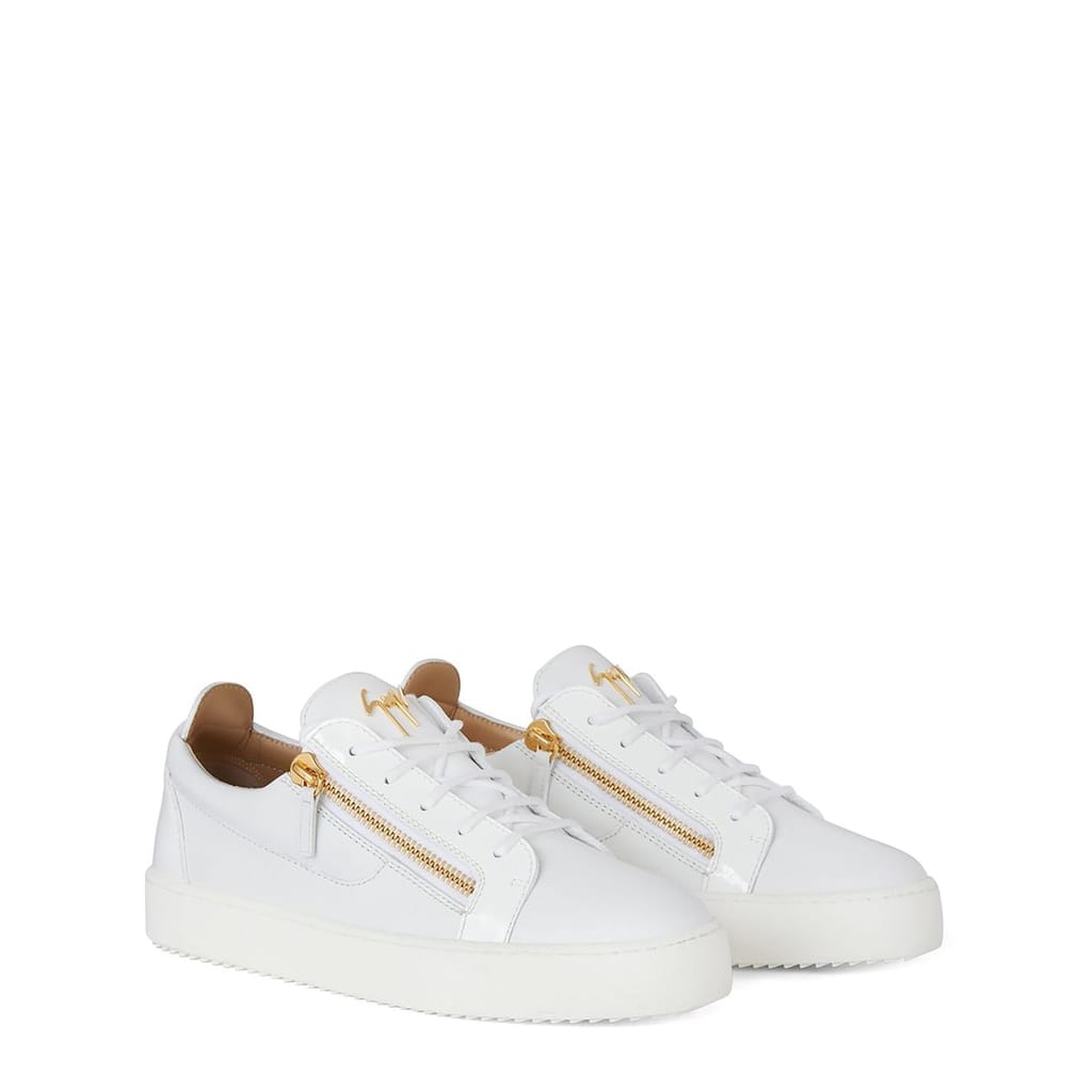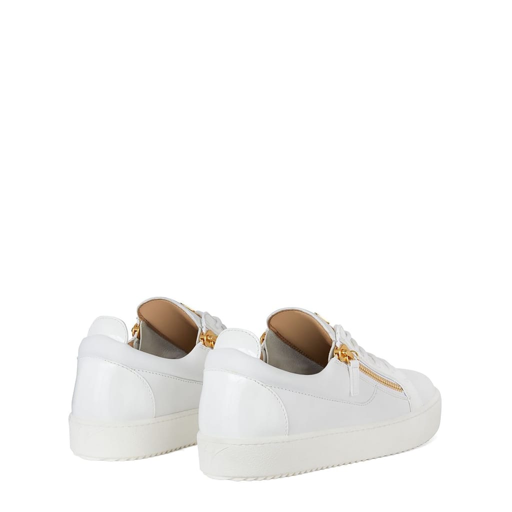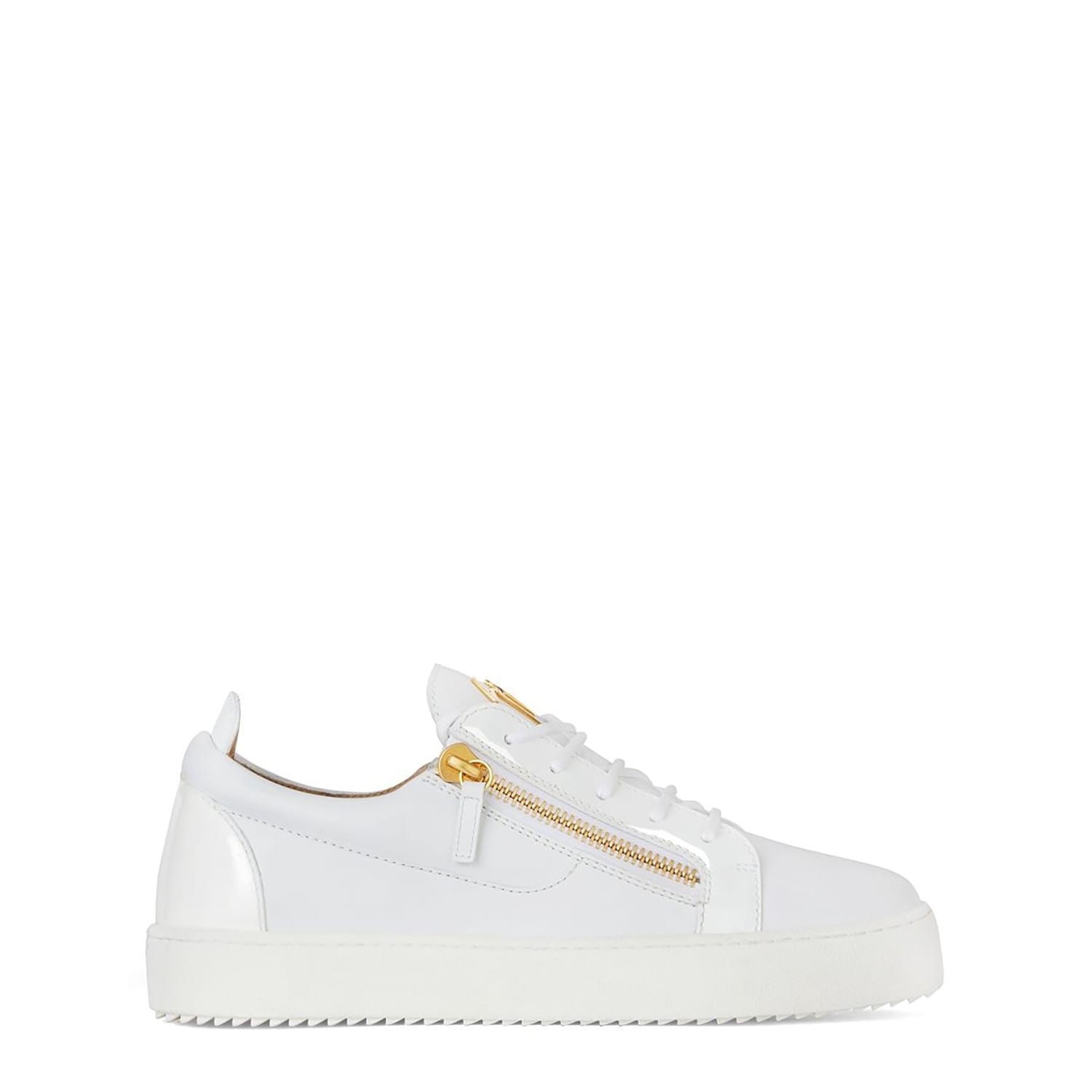 These Giuseppe Zanotti May London low top trainers are crafted from panels of patent and smooth leather. These contemporary trainers have the brand's signature double zips to the sides, a lace up closure and iconic logo detailing. Branded packaging included.