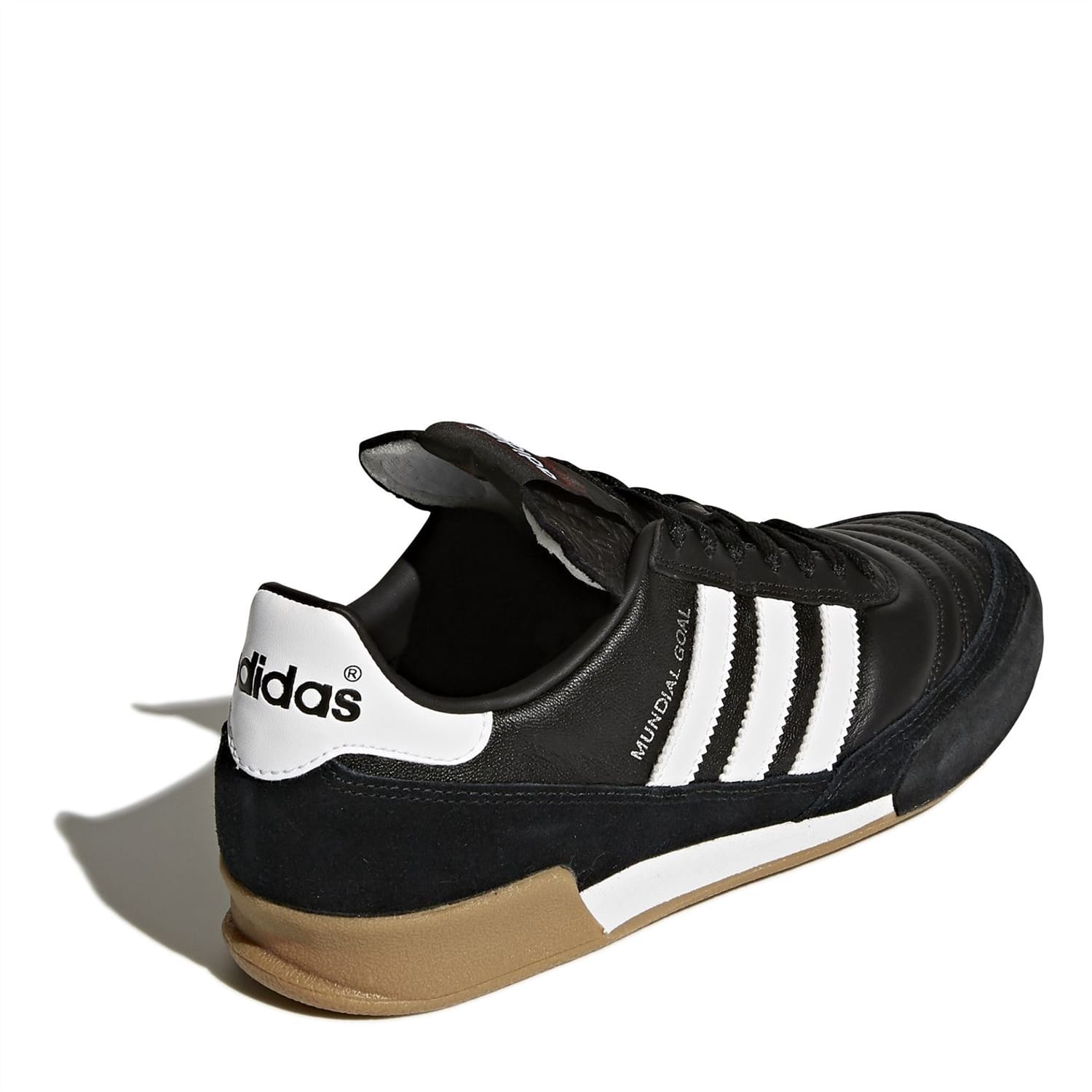 Styled just right for indoor football and futsal matches, the adidas Mundial Goal football boots feature a smooth K-leather upper for a glove-like fit and a split-suede abrasion patch for durability and support. They also have lightweight EVA cushioning and a non-marking gum rubber outsole.- Synthetic lining for comfort.