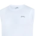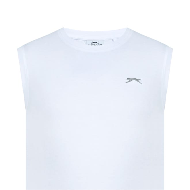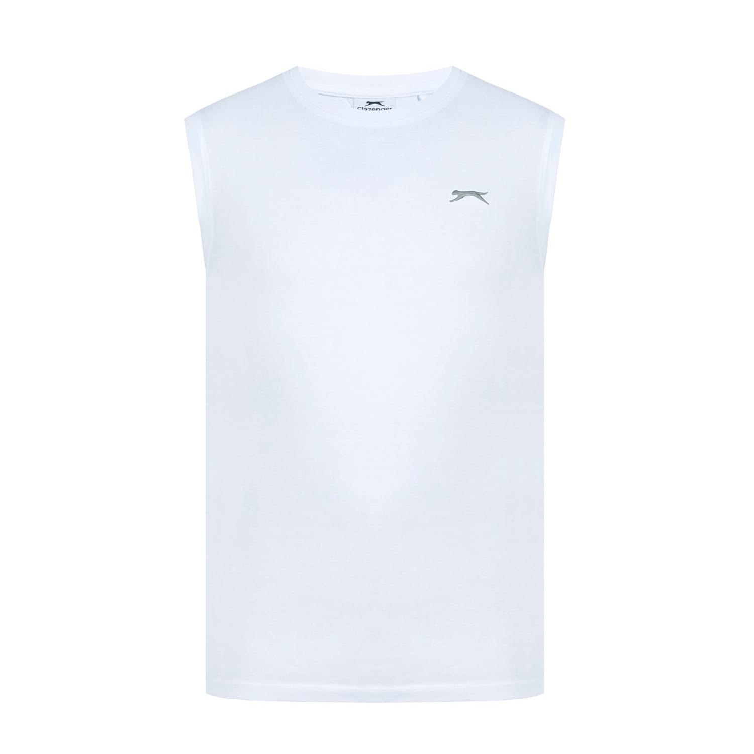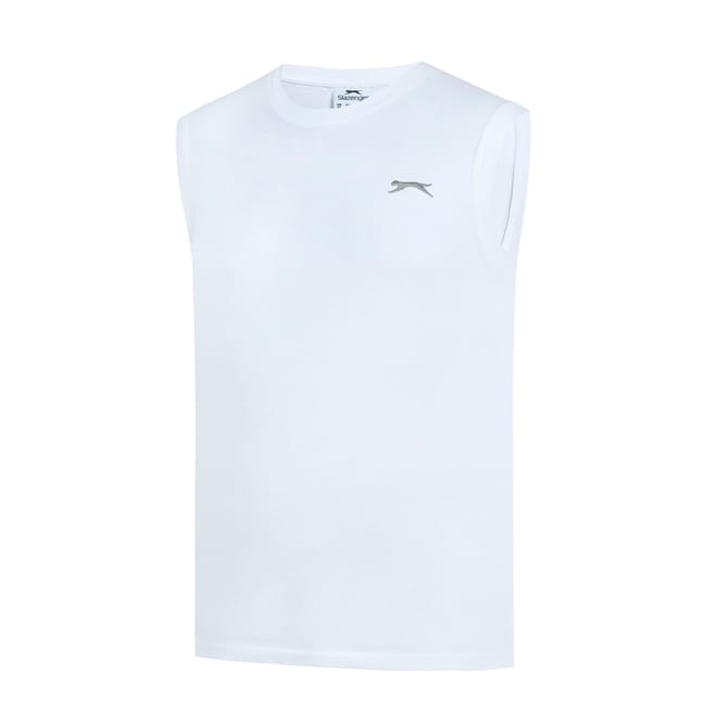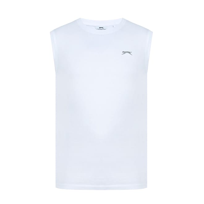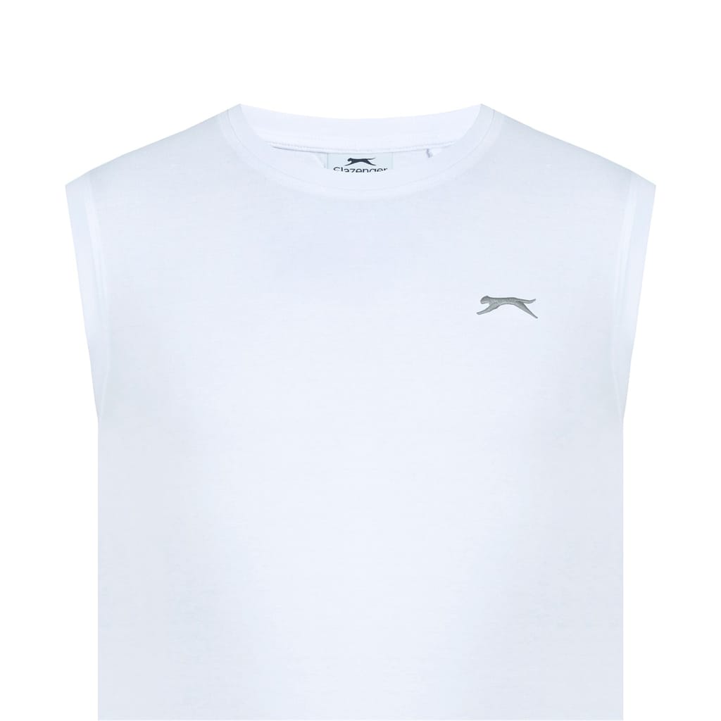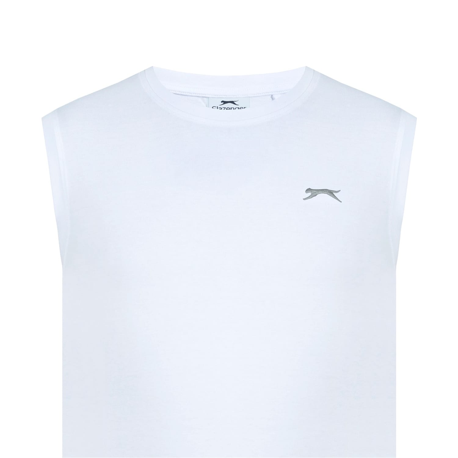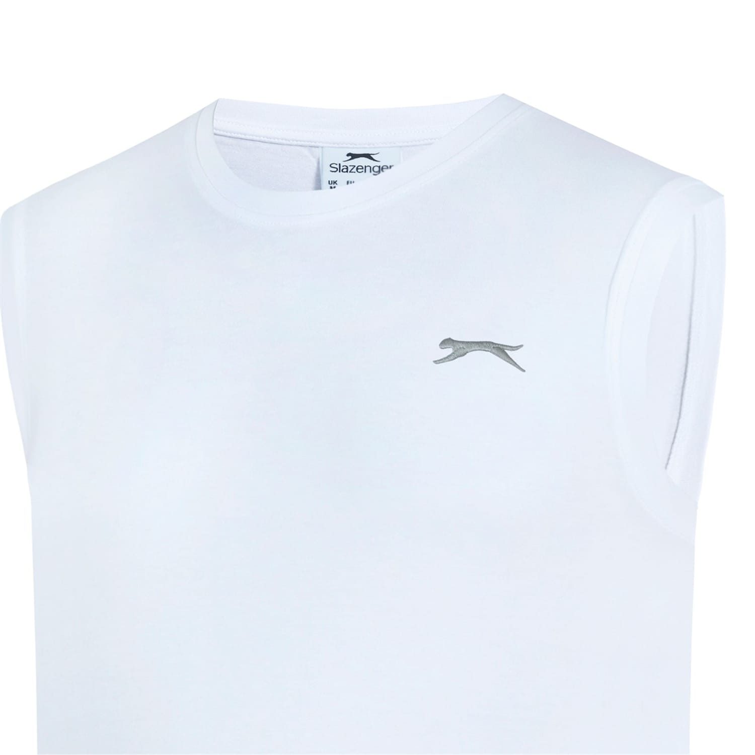 - Refresh your casual wardrobe with this Slazenger Vest which provides comfort thanks to its 100% cotton construction. Styled with a round neck and no sleeves, the vest is given a casual look that is ideal for summer time fun or at home lounging. Branding is embroidered 3D Slazenger logo which is recognisable around the world as a hallmark of sporting quality. -