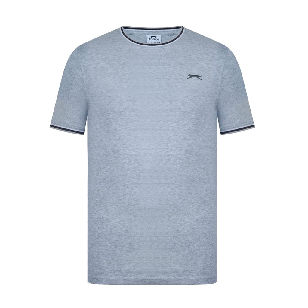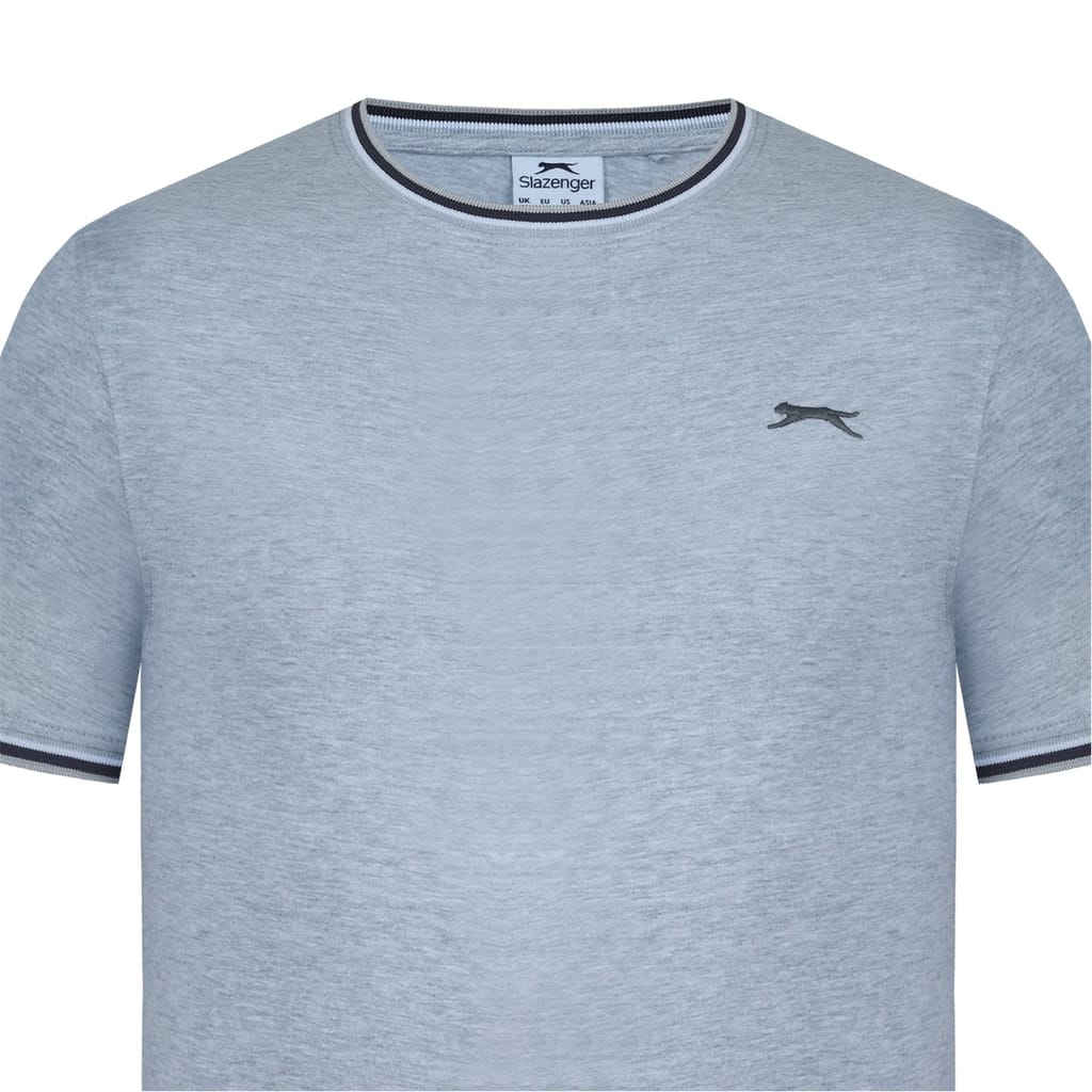 - This Slazenger Tipped T Shirt features short sleeves with a ribbed cuff with tipping for a colour pop. Tipped crew neckline with tipping for a classic look. Comfortable fit and is a lightweight construction. This t shirt is designed with an embroidered 3D logo to the chest for signature Slazenger branding.