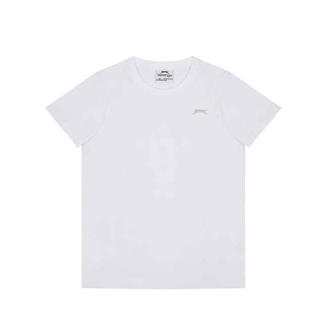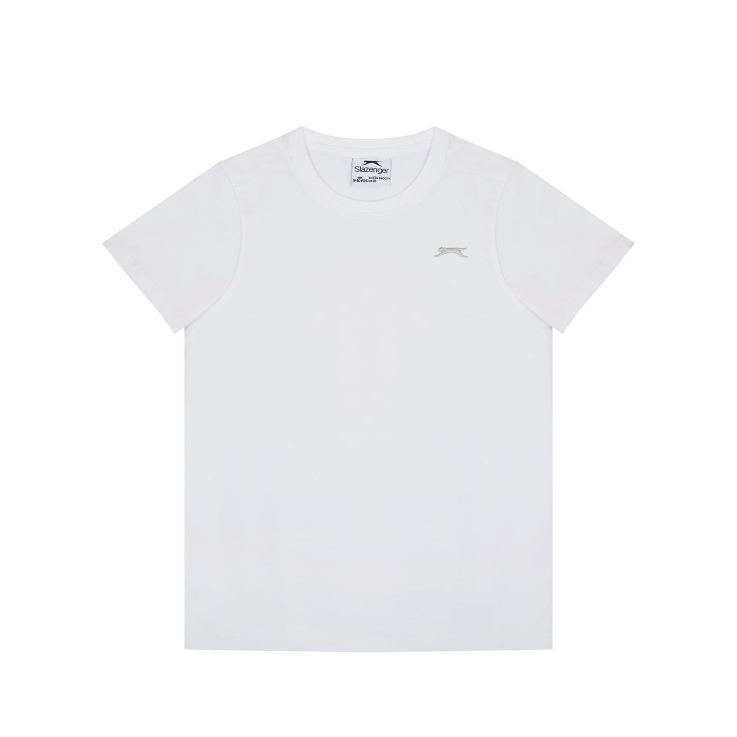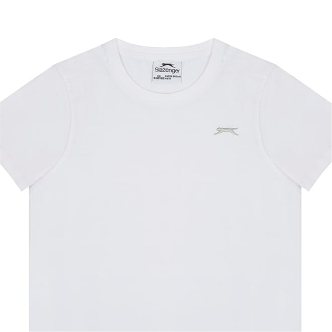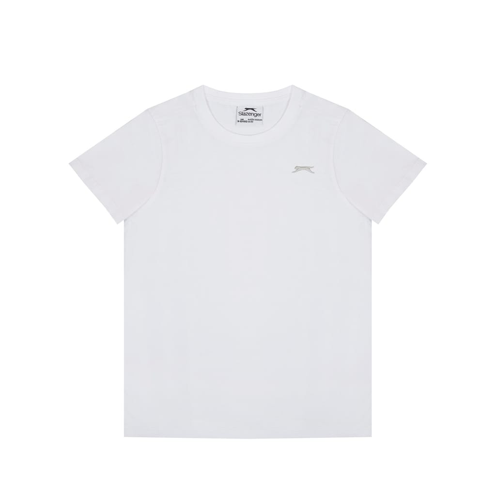 - Sport a casual everyday look with this Slazenger Plain T Shirt. Constructed with a ribbed crew neck and short sleeves for a casually classic look, this staple tee can be worn for leisure, sport or lounging around at home. The Slazenger logo is embroidered on the chest for brand recognition and block colour throughout for a simple and minimal aesthetic.