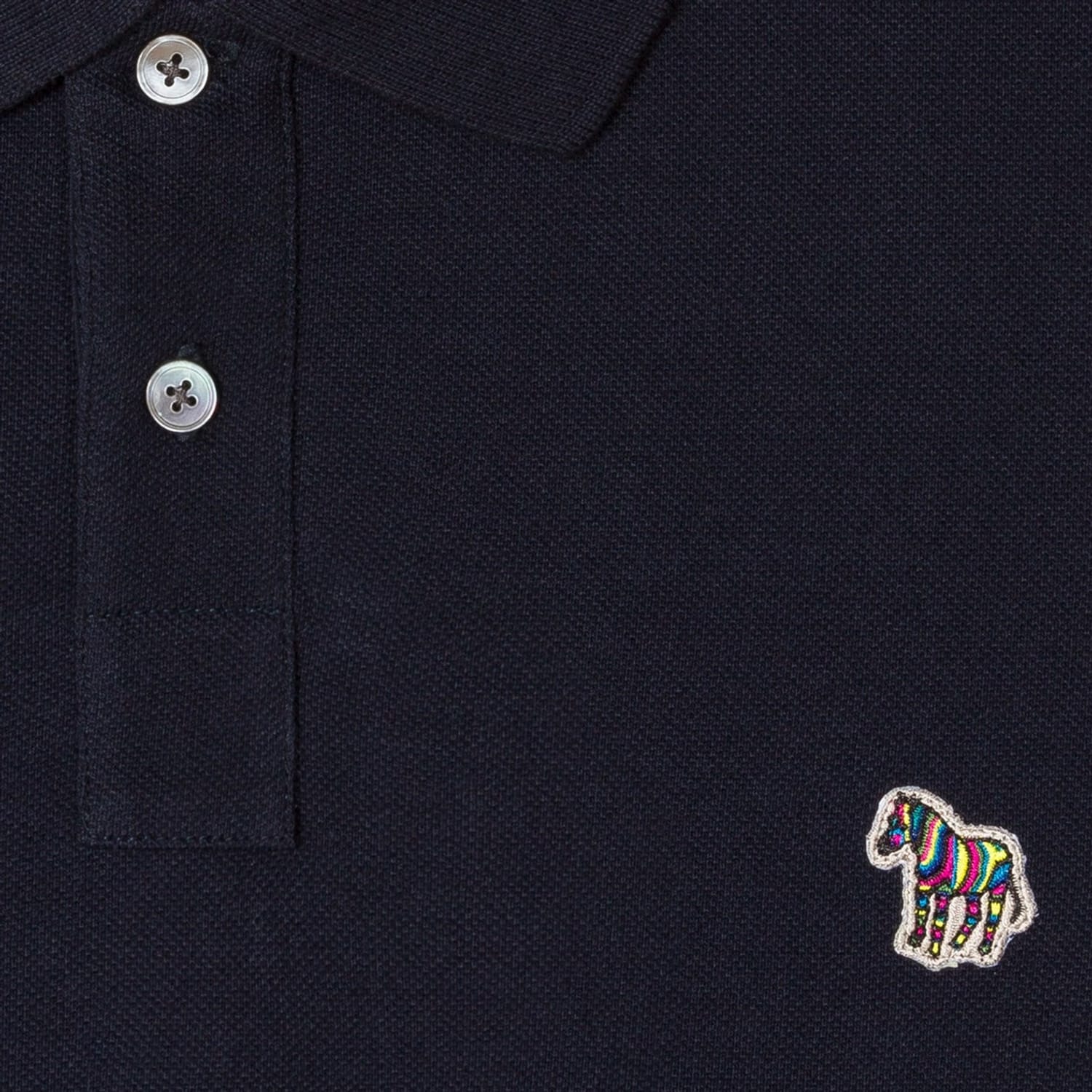 Rejuvenate your Shirt collection with this simple yet stylish Zebra Polo Shirt brought to you by PS Paul Smith. Constructed in a 100% cotton fabrication this shirt comes in a regular fitting, elbow length sleeved polo shirt design. This classic style shirt boasts a polo neck collar with an easy two button fastening system. ribbing to the cuffs and hem. The look is finished in a solid block colouring and is completed by the iconic multicoloured zebra logo embroidered to the front, allowing for instant brand recognition and appreciation.