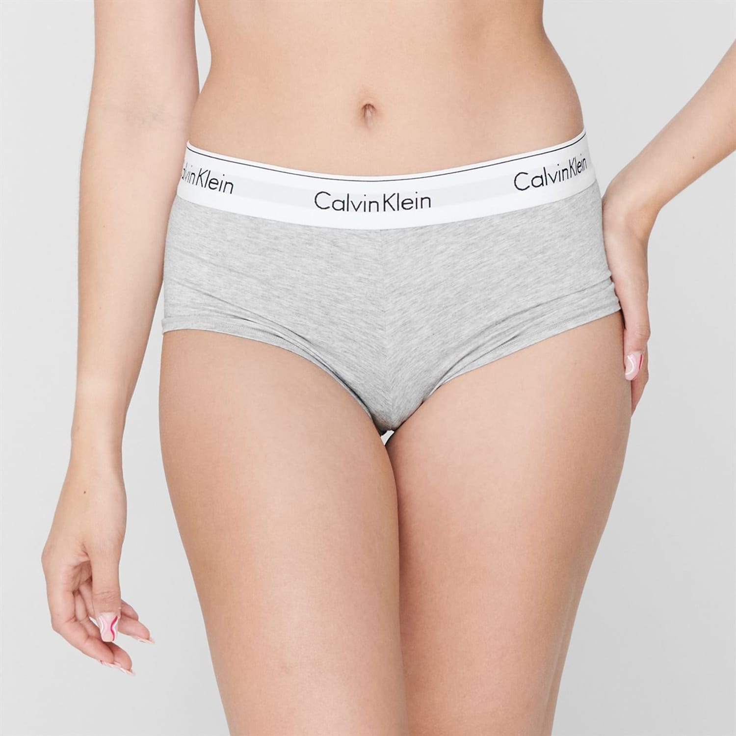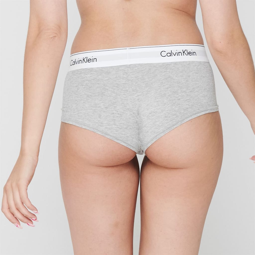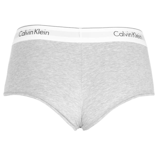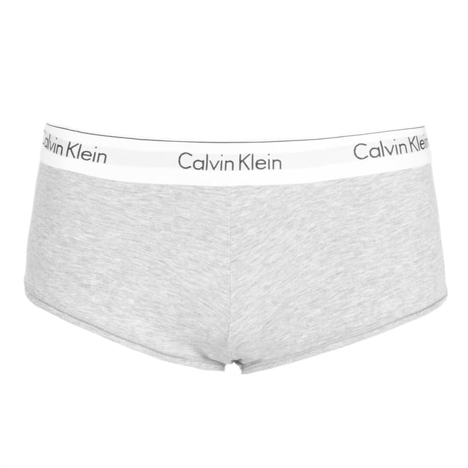 Elevate your underwear collection with these Modern Cotton boy shorts by Calvin Klein This piece is crafted in a stretchy fabric, featuring flat lock seams, elasticated waistband and is finished with the brands signature logo all the way around.