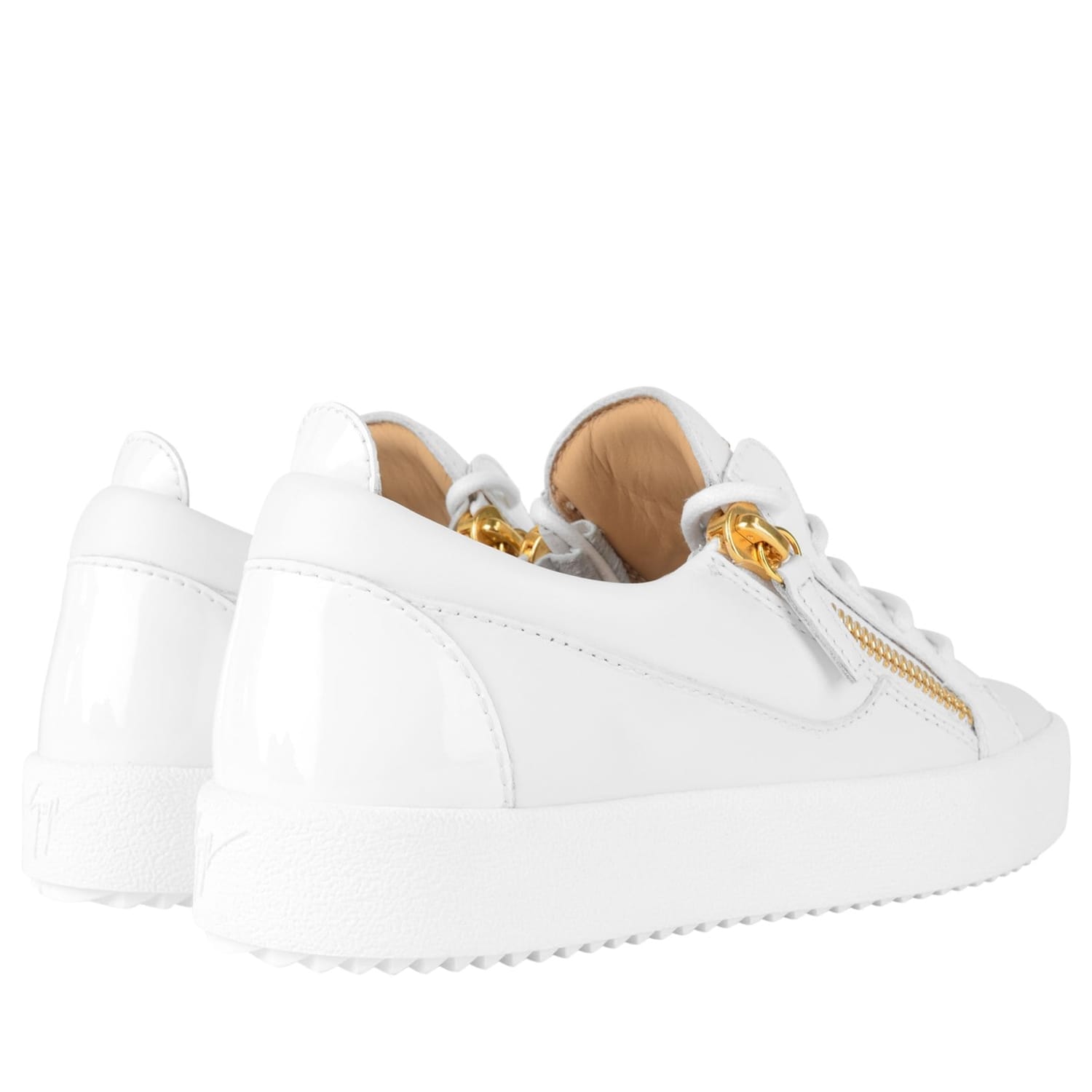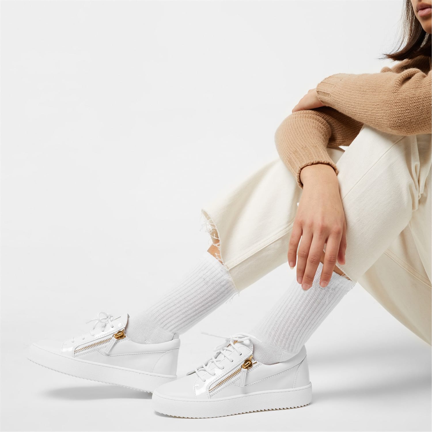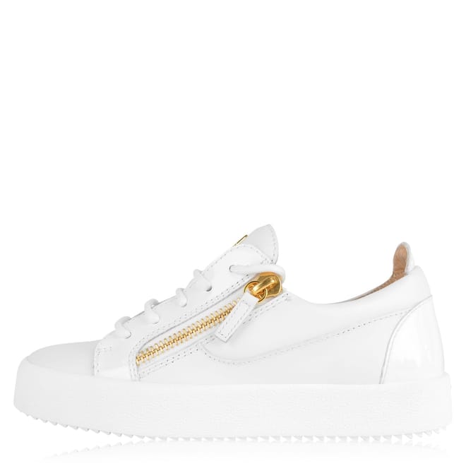 Refresh your casual footwear collection for the new season with these Giuseppe Zanotti May Leather Low Top Trainers. Crafted in Italy, the May trainers resemble a classic low top silhouette with a rounded toe, heel tab and full front lace-up fastening. The look is elevated with suede uppers, a transparent rubber sole with jaggered lines and finished with Giuseppe Zanotti's signature side zip detailing in a silver finishing and a tonal metal hardware of the logo to the tongue. Presented in branded packaging and dust bag.