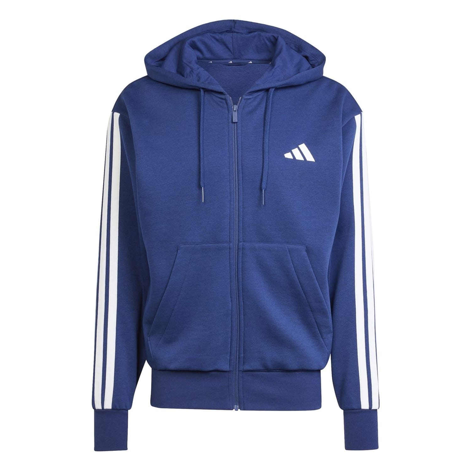 adidas presents the Essentials Fleece 3-Stripes Full-Zip Hoodie- the perfect addition to your everyday wardrobe. Featuring a super-soft brushed lining on the interior, this low-key men's hoodie is ideal for walking home from the gym or kicking back after a long day at the office.