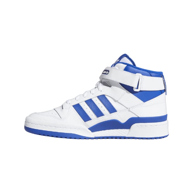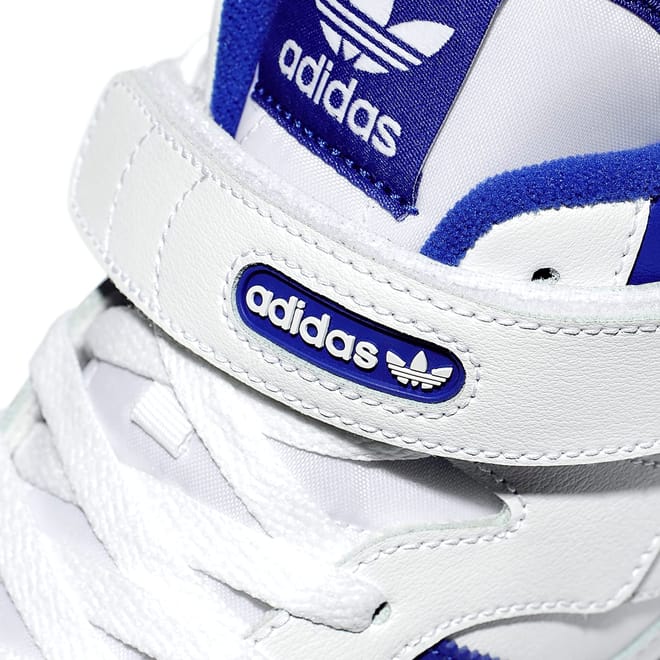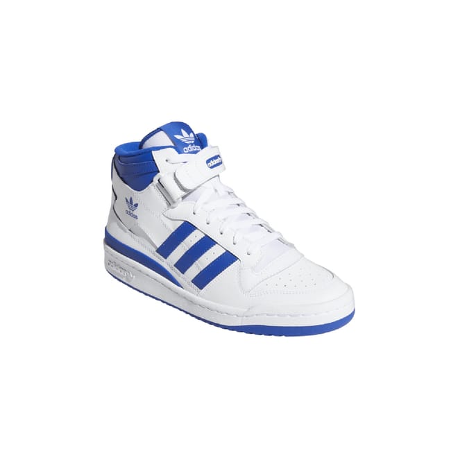 Mens adidas Originals Forum Mid Shoes in cloud white / royal blue.