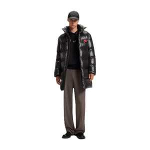 Boss Hooded Snap Button Solid Patterned Over Coat