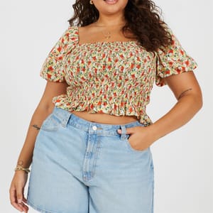 Brave Soul Womens Plus Size Puff Sleeve Top With Ruched And Tie Details.