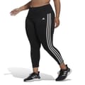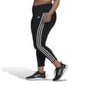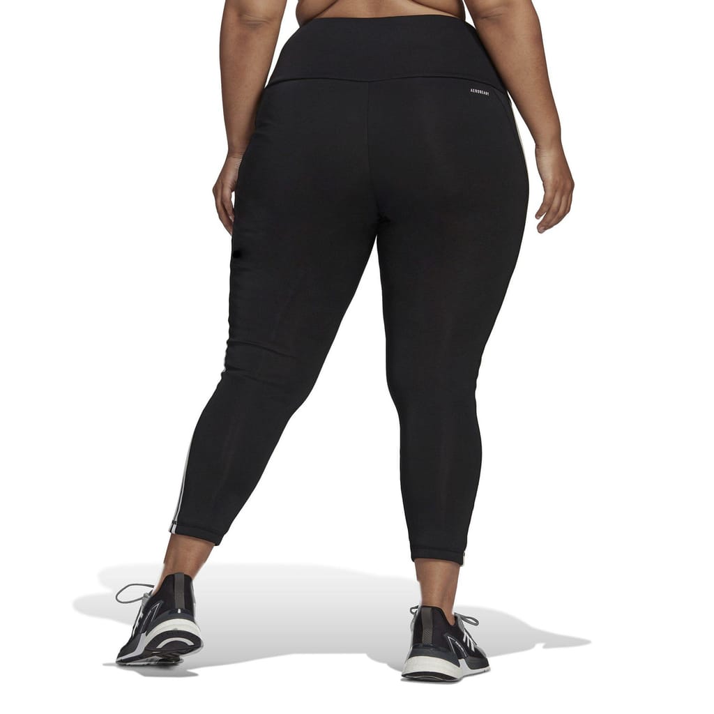 Womens adidas Designed to Move High-Rise 3-Stripes 7/8 Sport Leggings (Plus Size) in black / white.